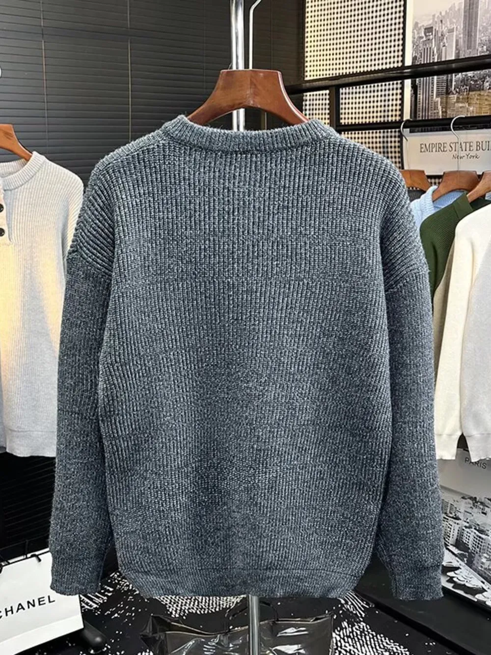 Men's Plus Size Button Detail Dropped Shoulder Sweater