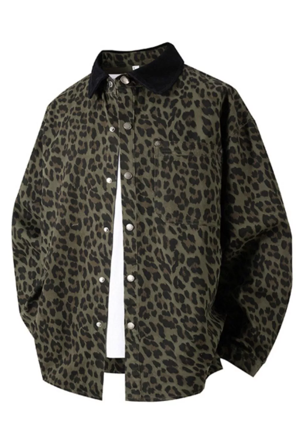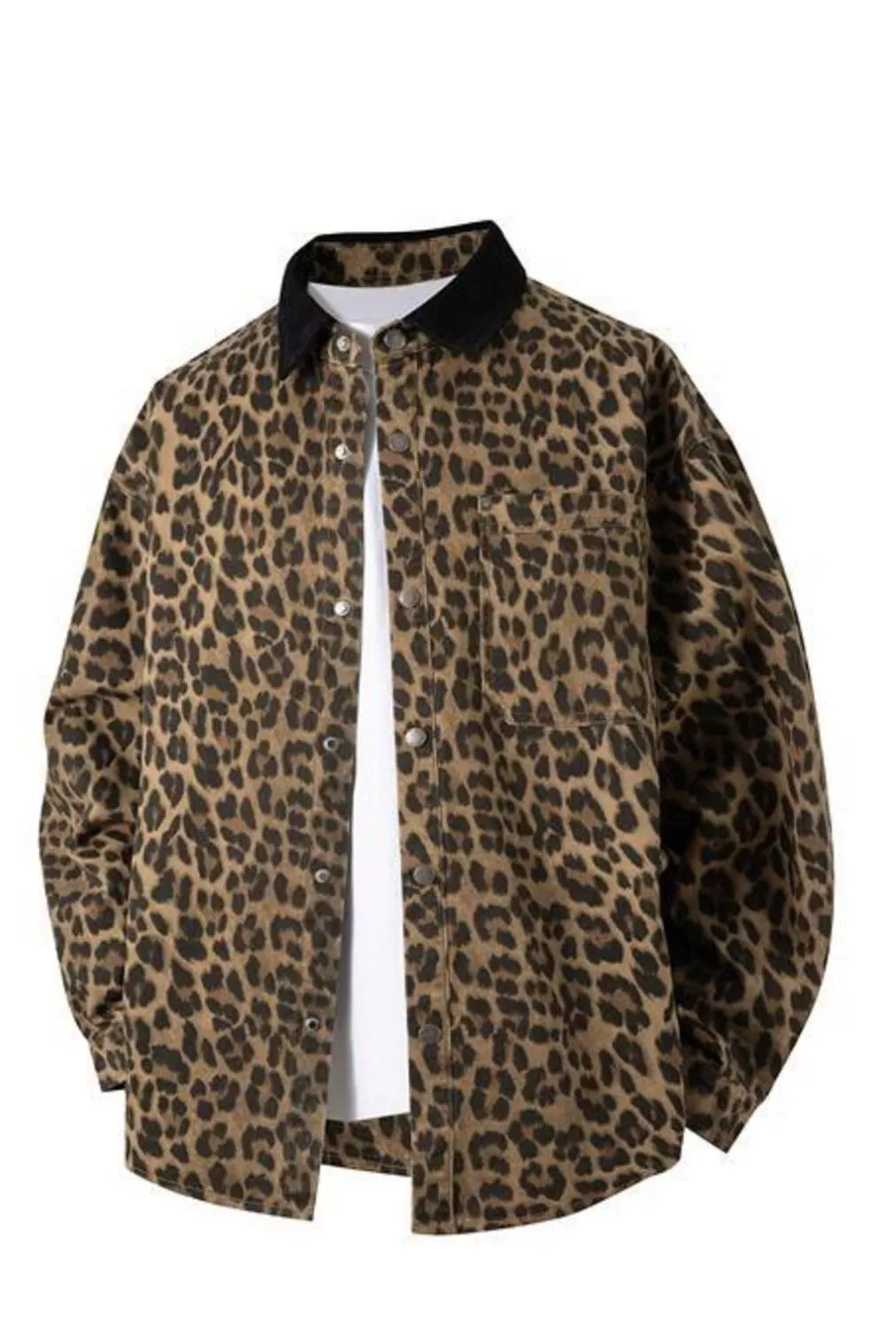 Men's Plus Size Leopard Print Snap Down Shirt