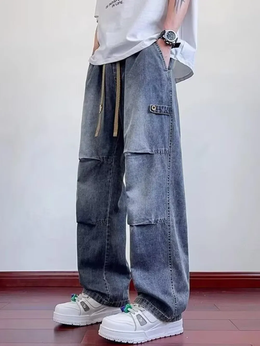 Men's Full Size Wash Wide Leg Jeans Plus Size
