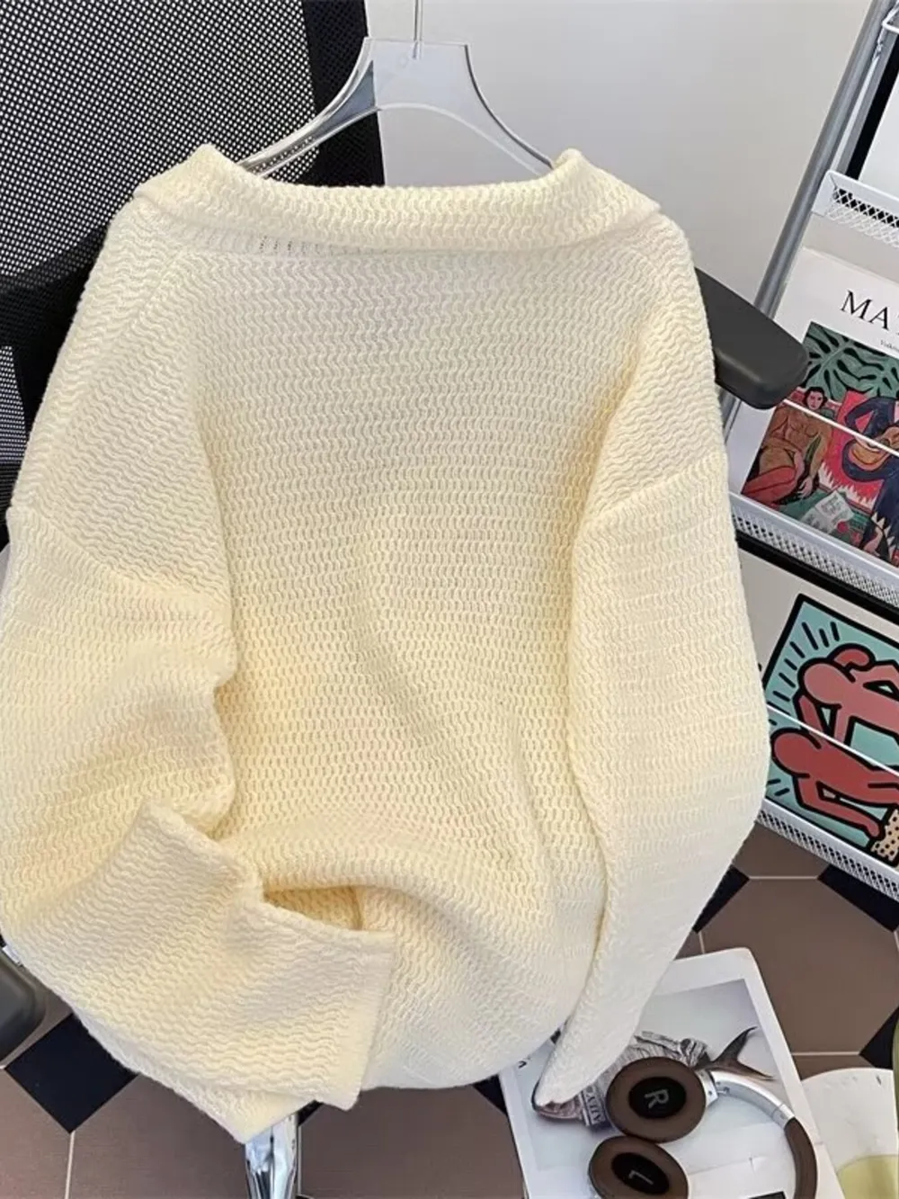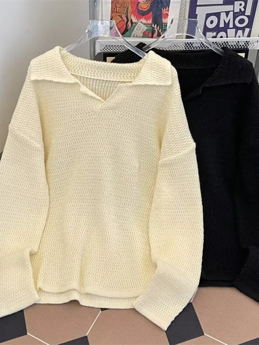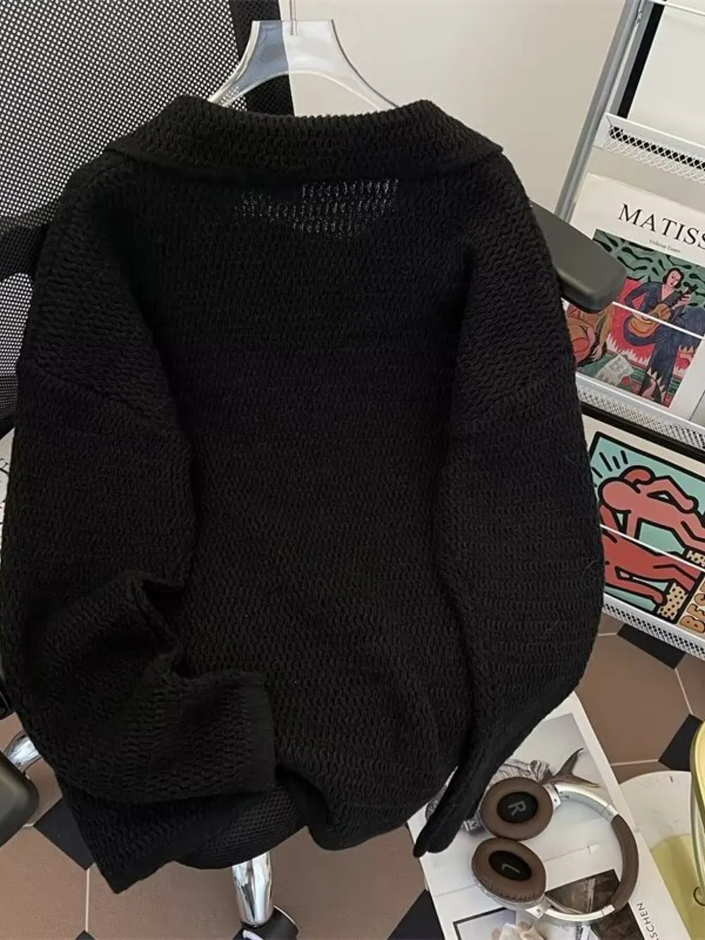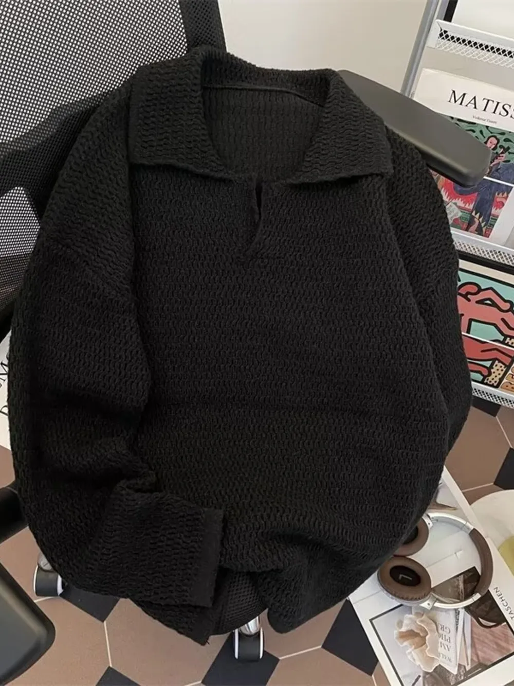 Men's Textured Knit Polo Collar Sweater