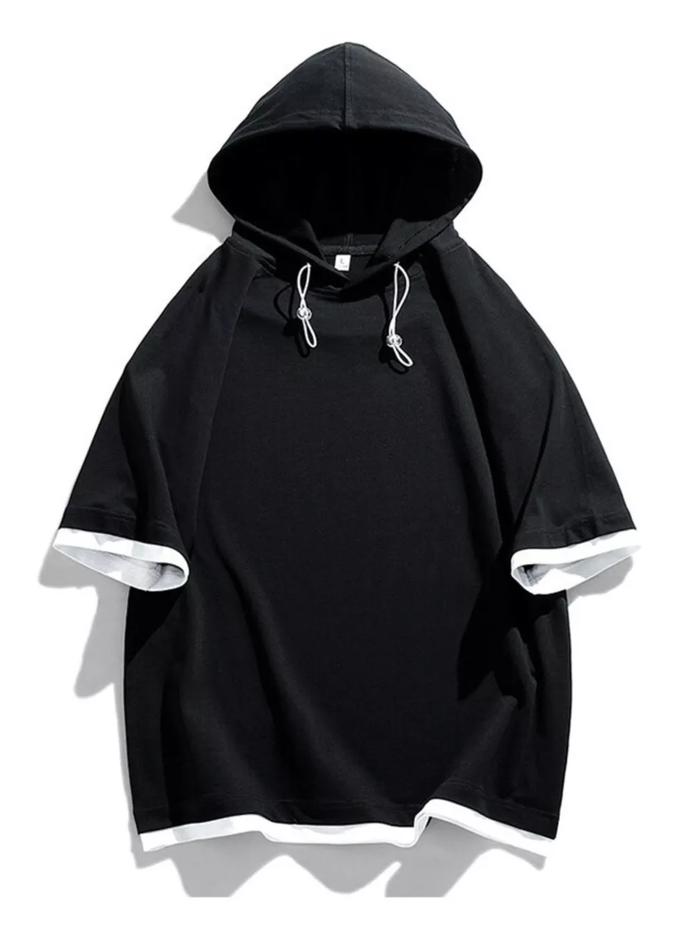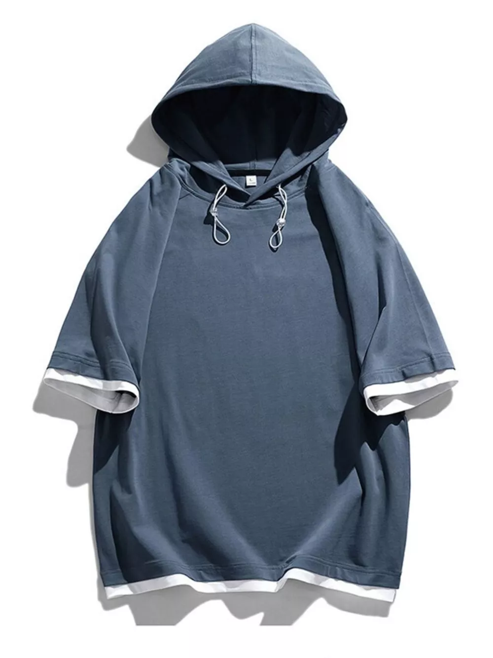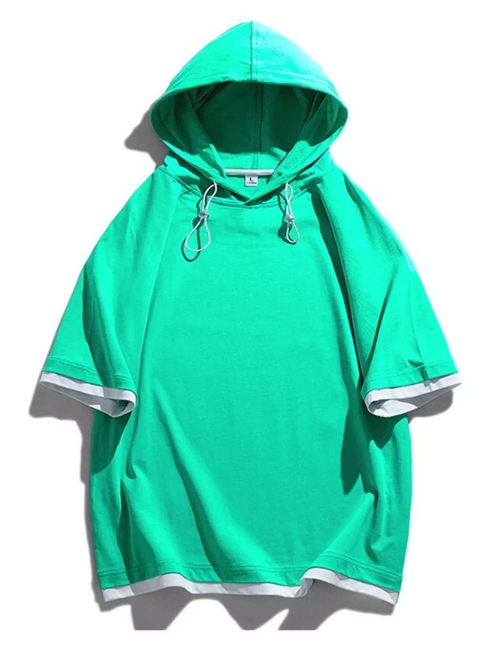 Men's Plus Size Casual Short Sleeve Hooded Top