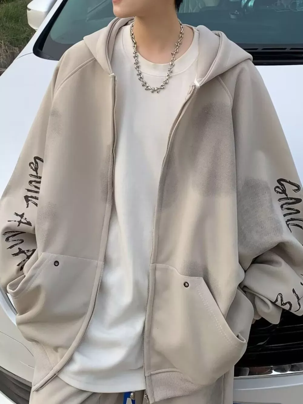 Men's Plus Size Zip Up Loose Fit Hoodie