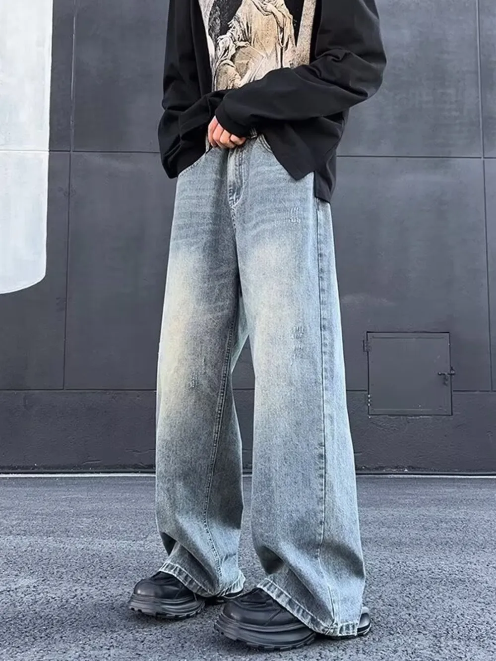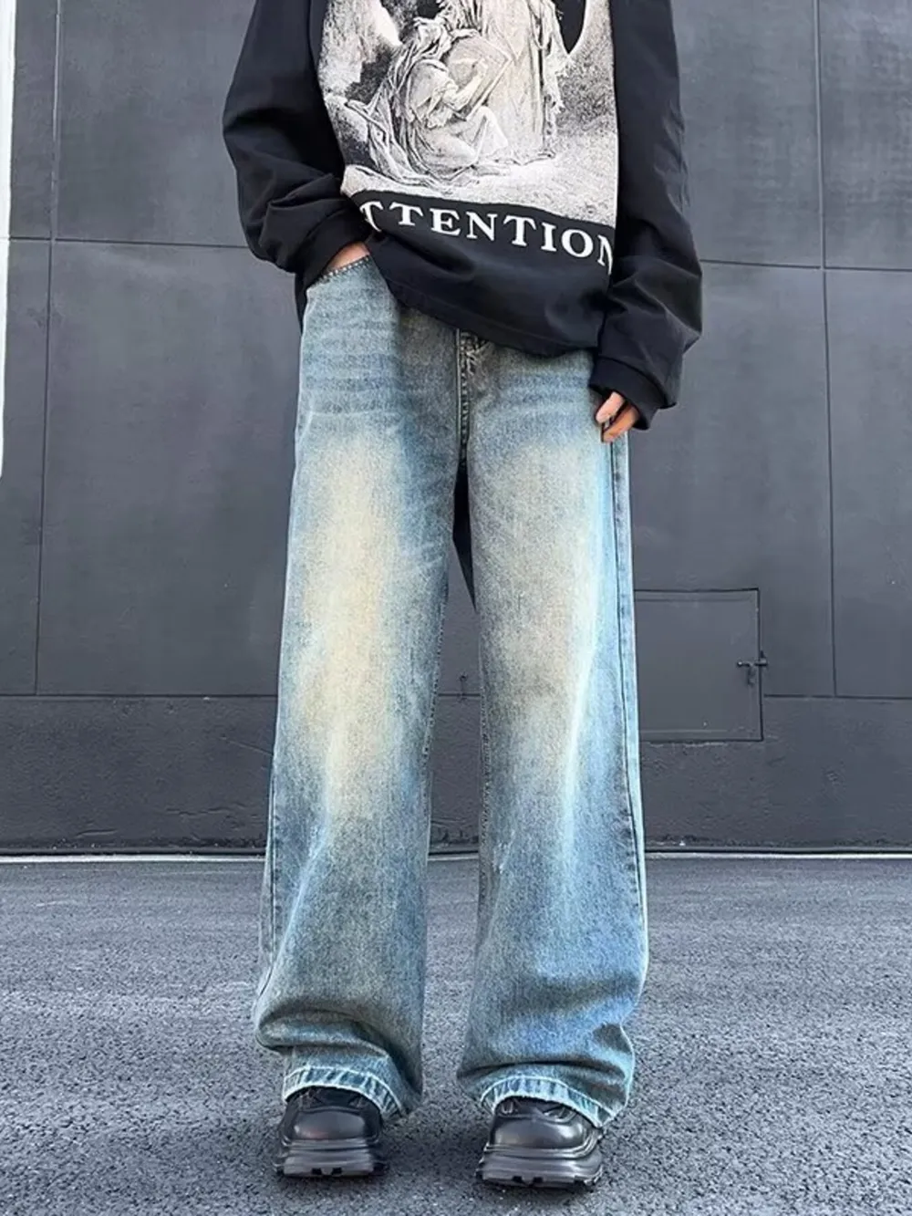 Men's Full Size Wash Wide Leg Jeans Plus Size