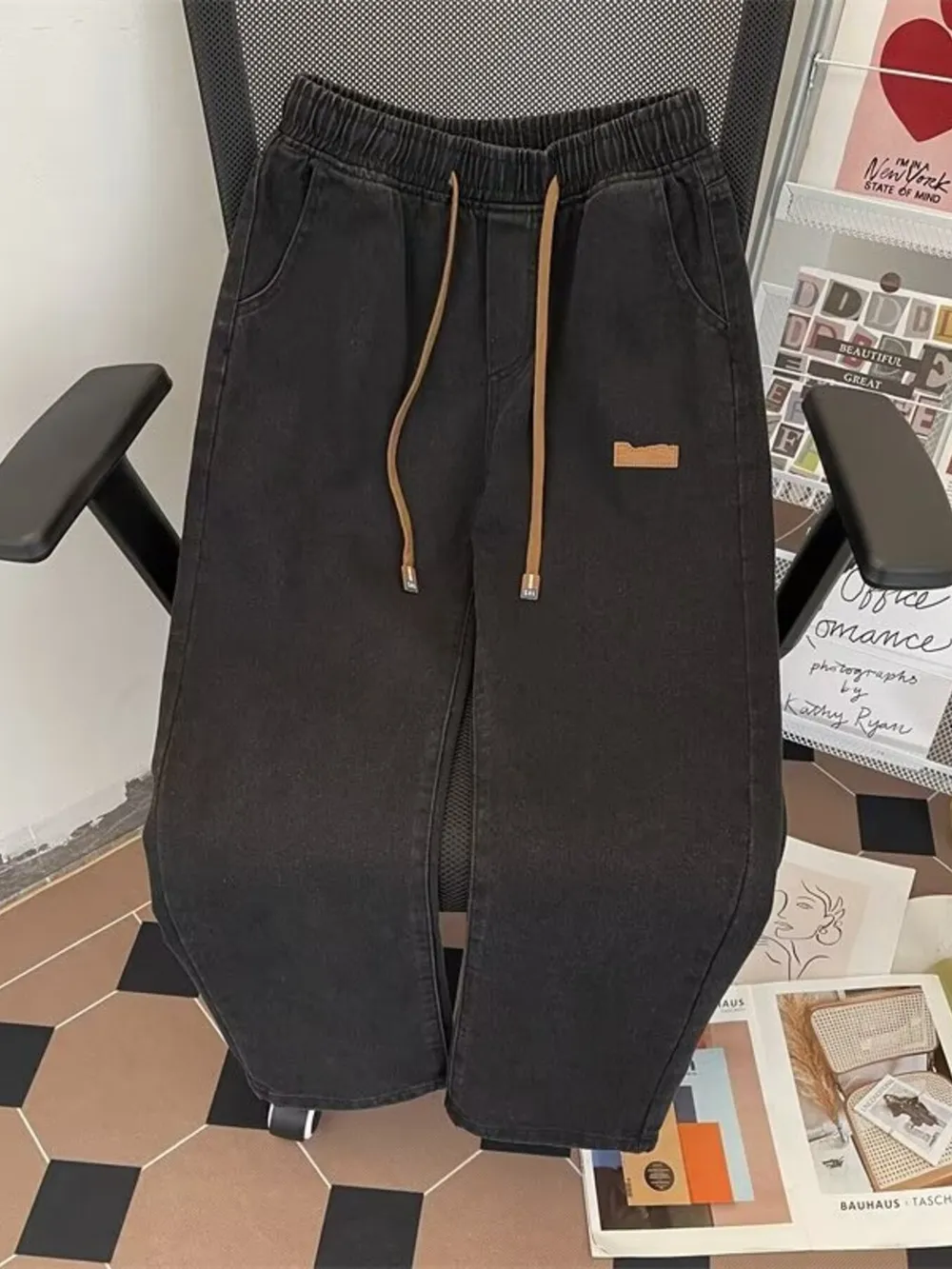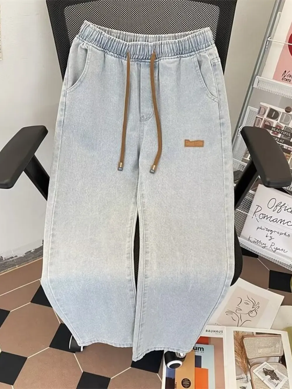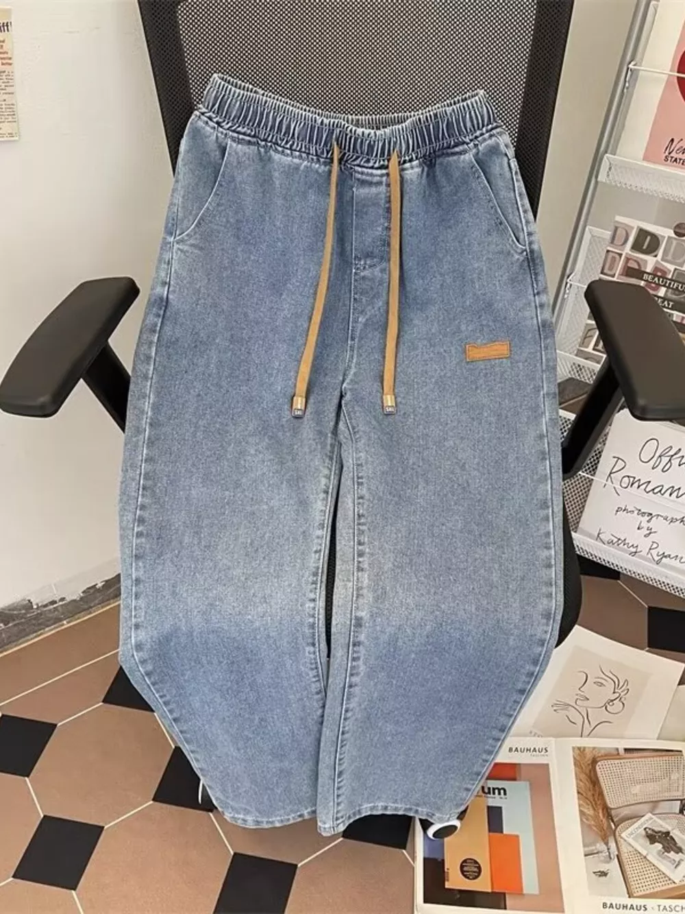 Men's Plus Size Drawstring Wide Leg Jeans