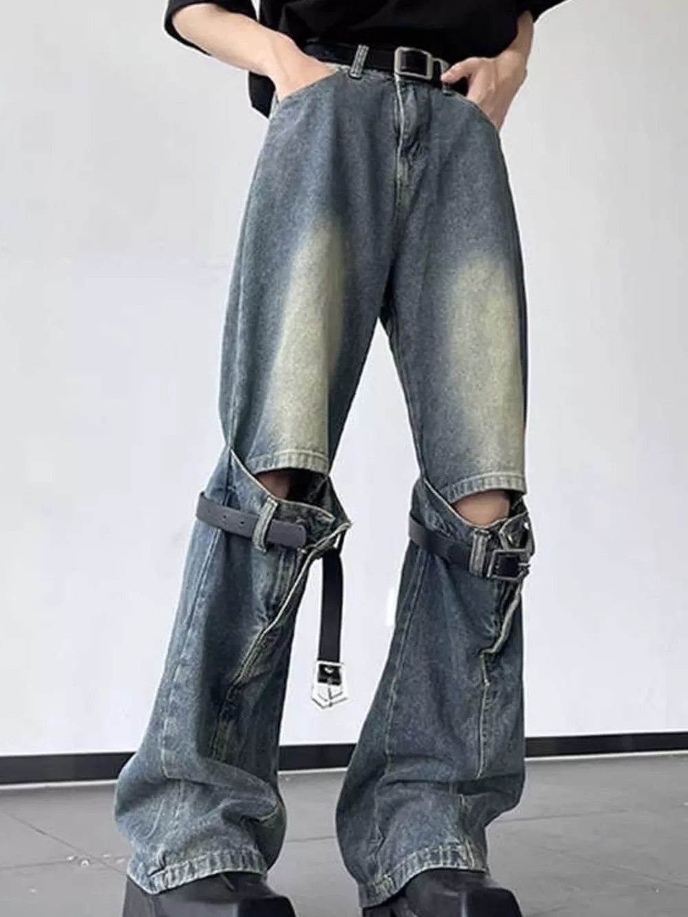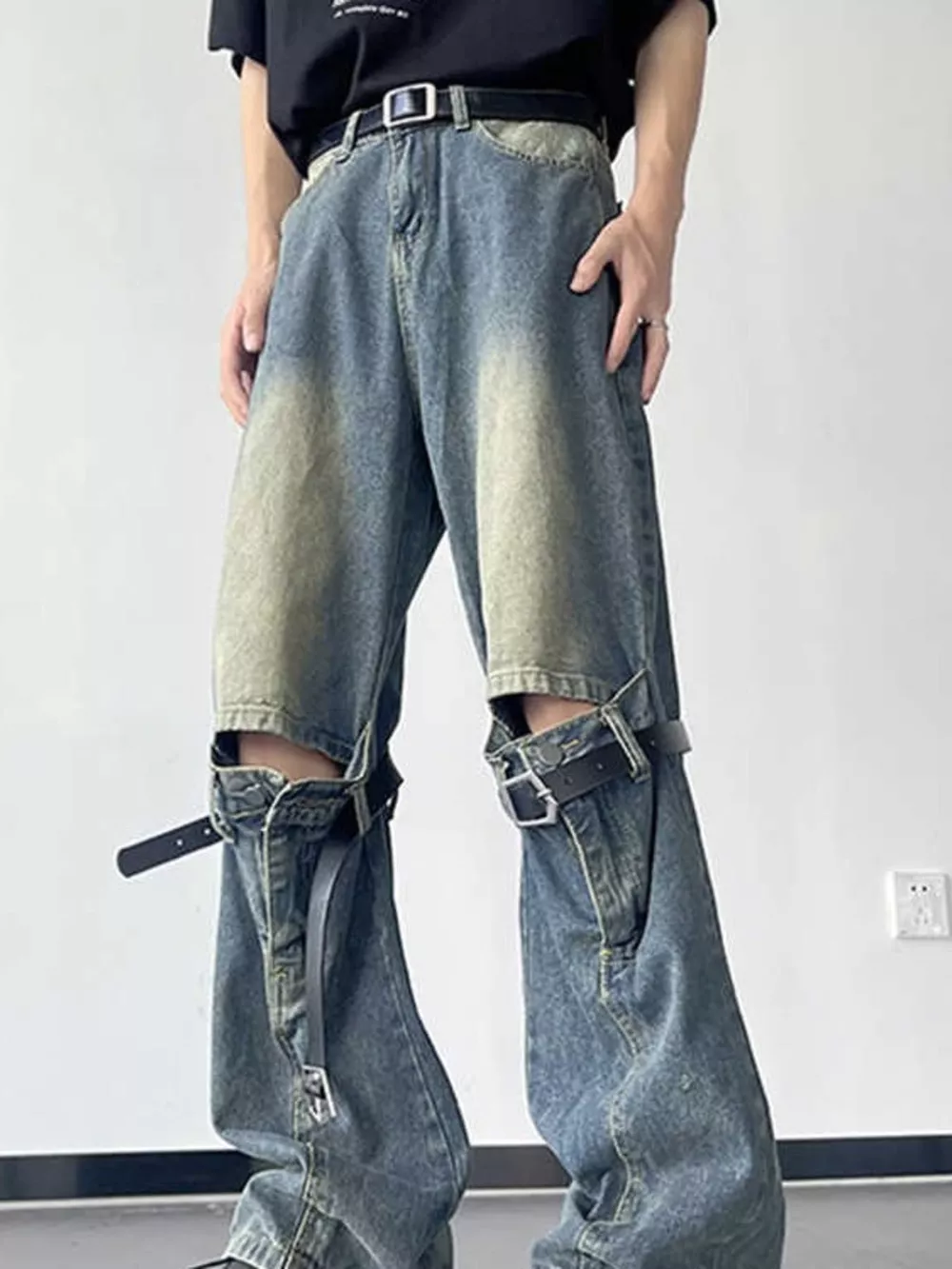 Men's Full Size Ripped Wide Leg Jeans Plus Size