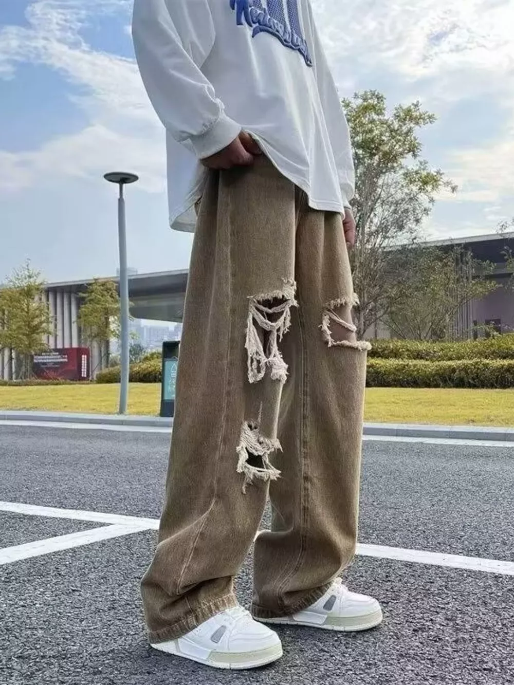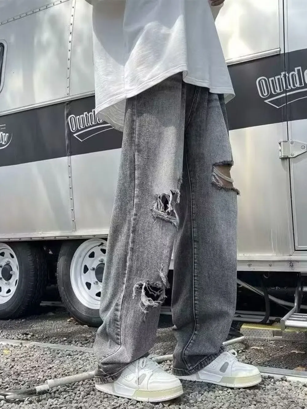 Men's Full Size Distressed Wide Leg Jeans Plus Size
