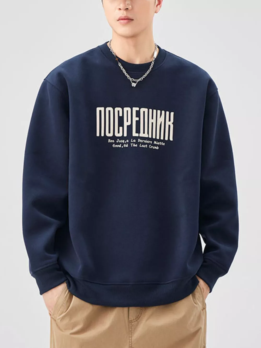 Men's Plus Size Letter Graphic Crew Neck Sweatshirt