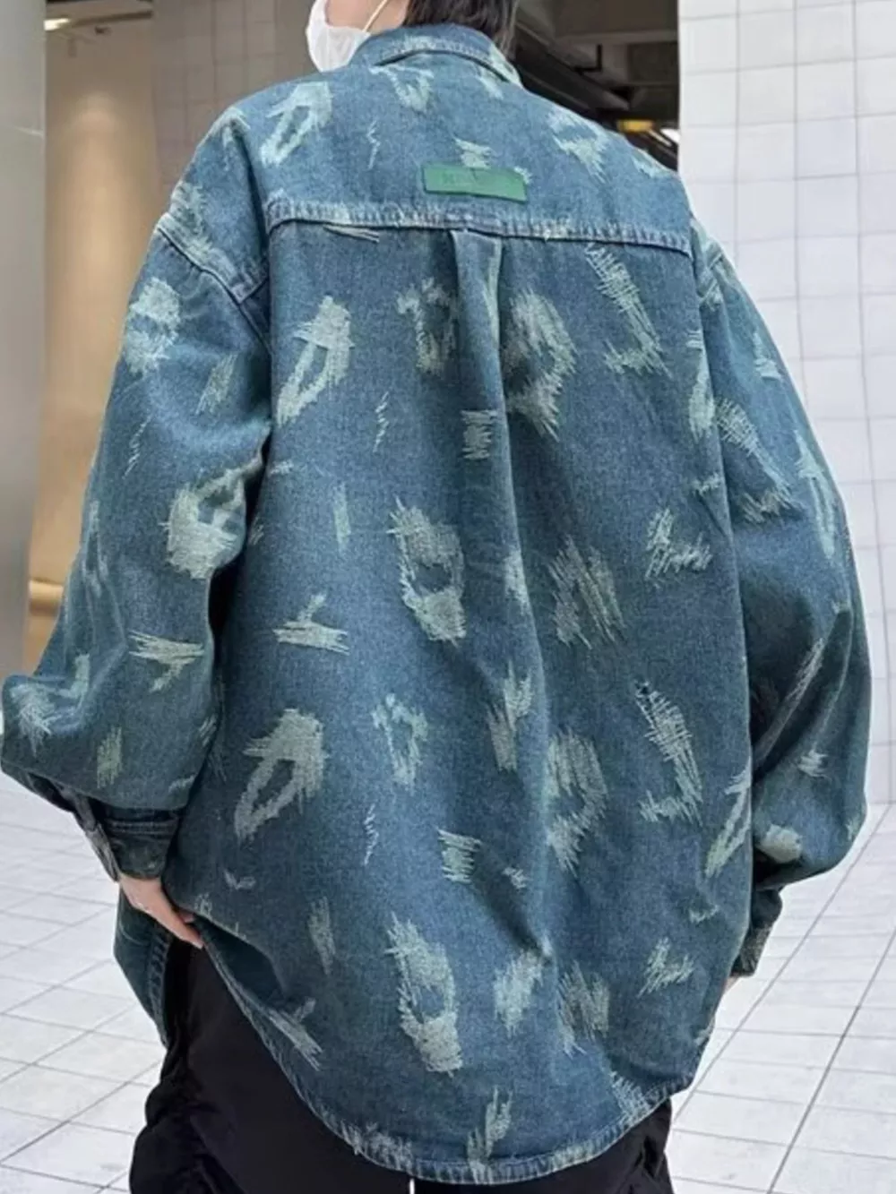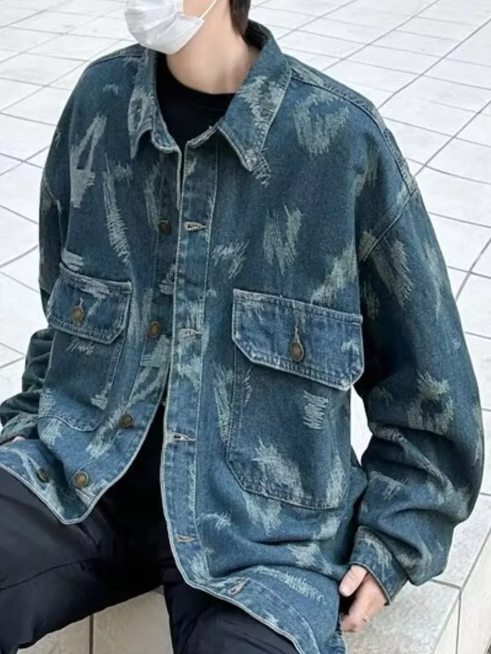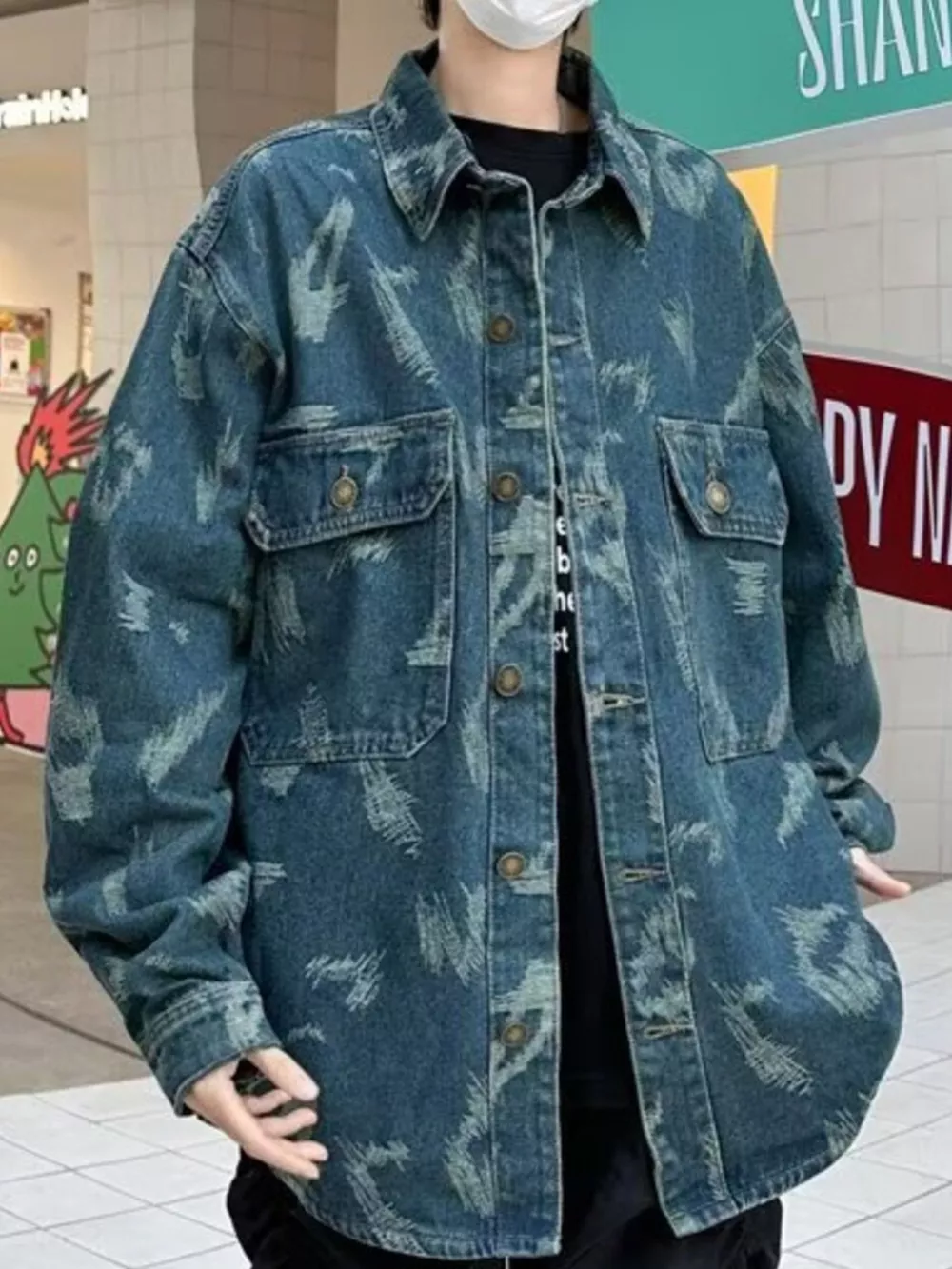 Men's Full Size Button Up Long Sleeve Denim Jacket Plus Size
