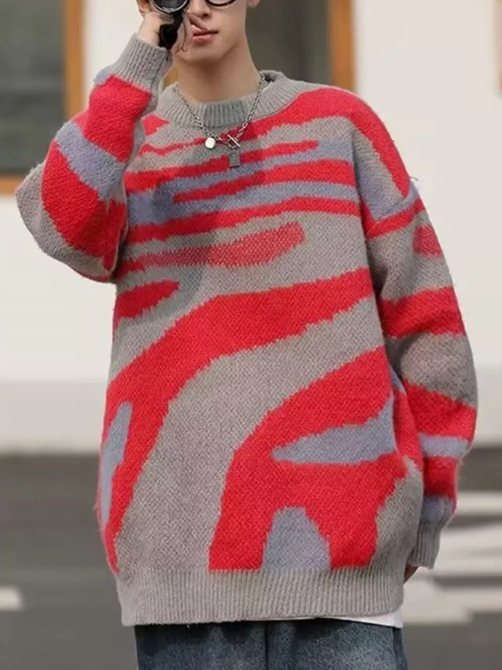 Men's Contrast Round Neck Sweater