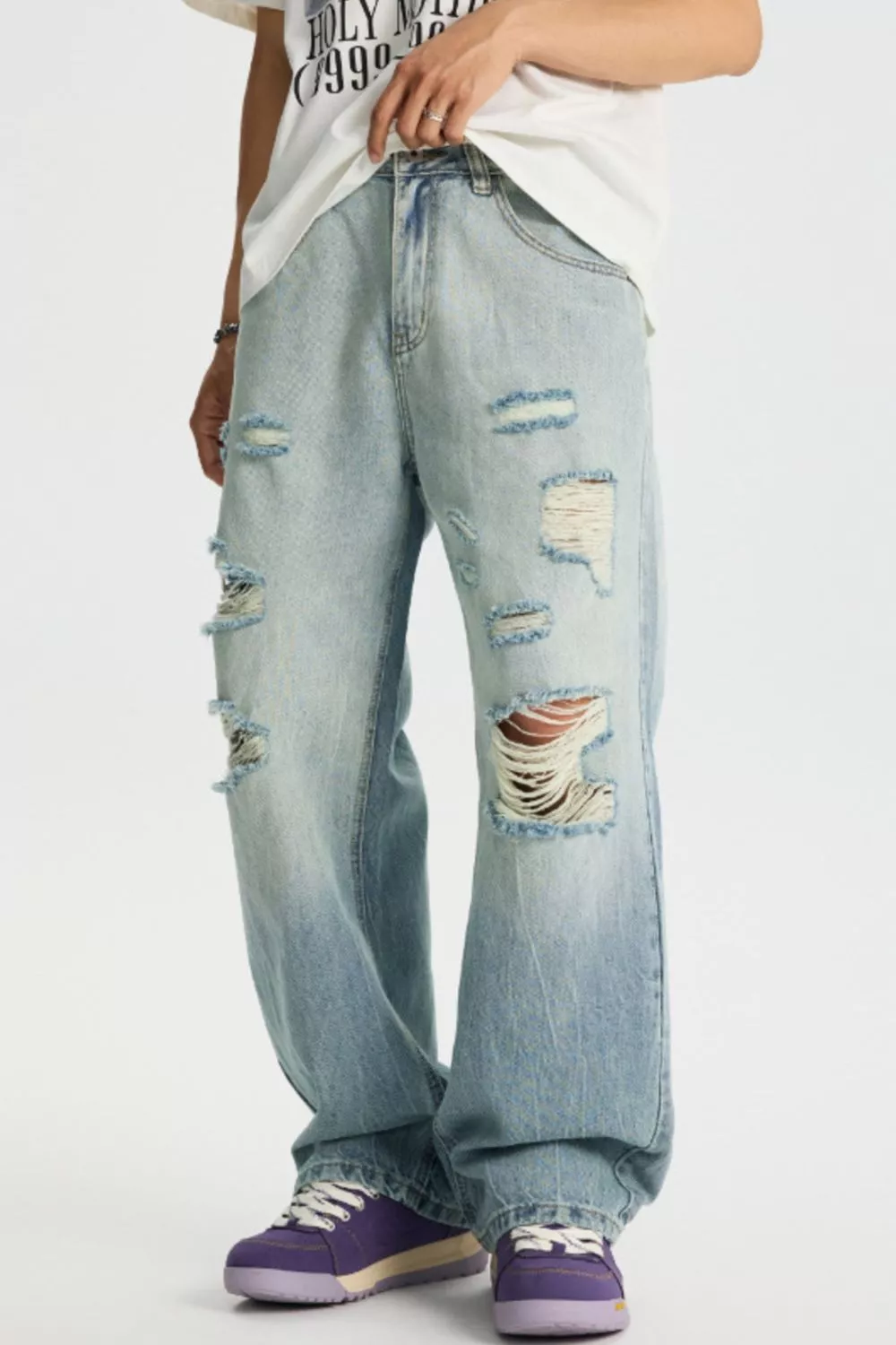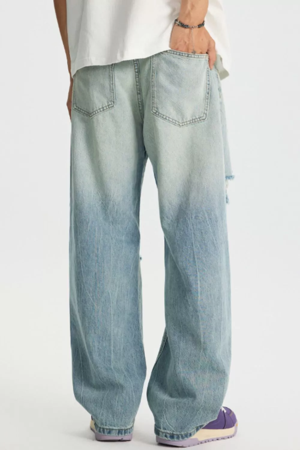 Men's Full Size Wide Leg Distressed Jeans Plus Size