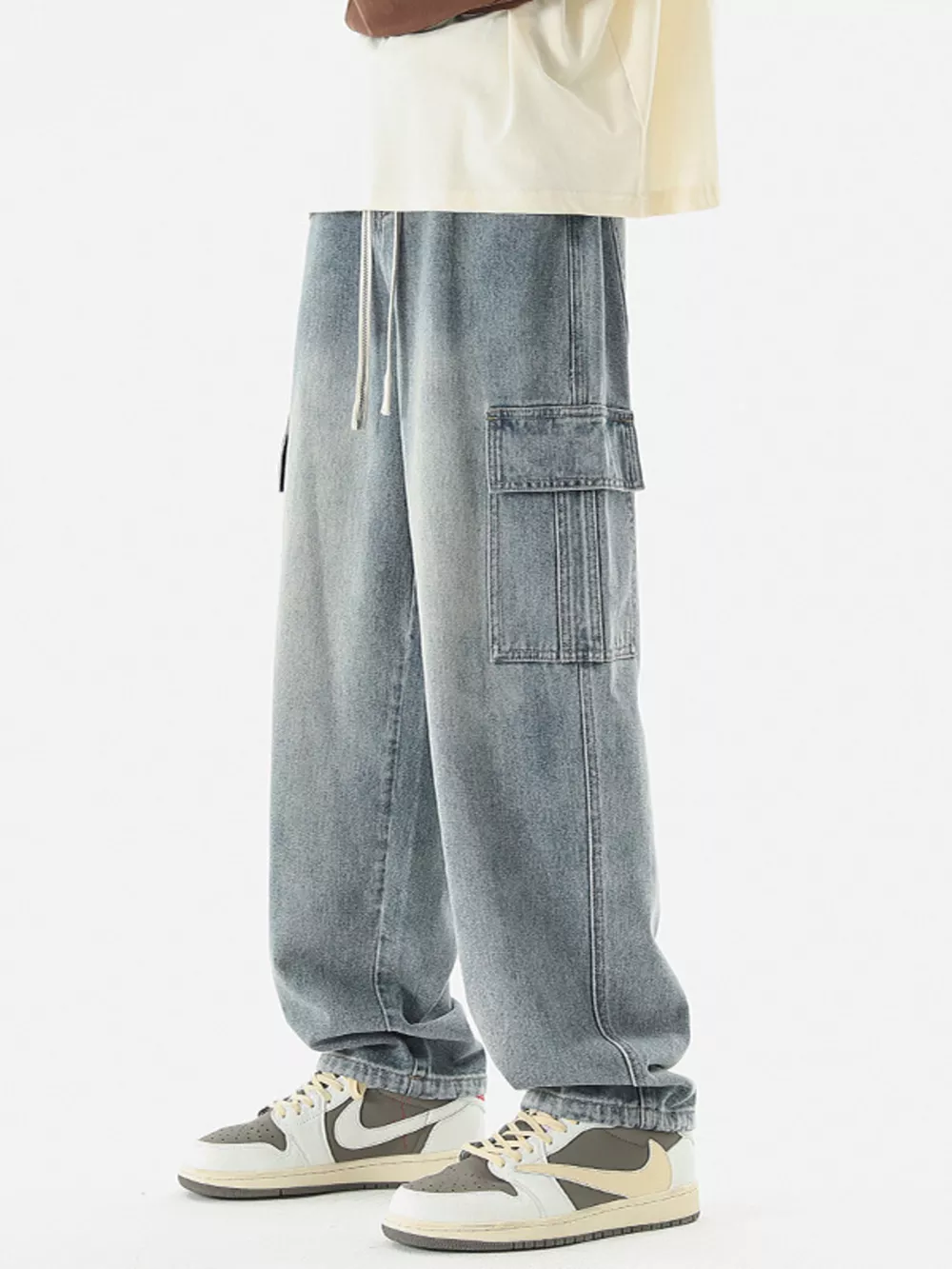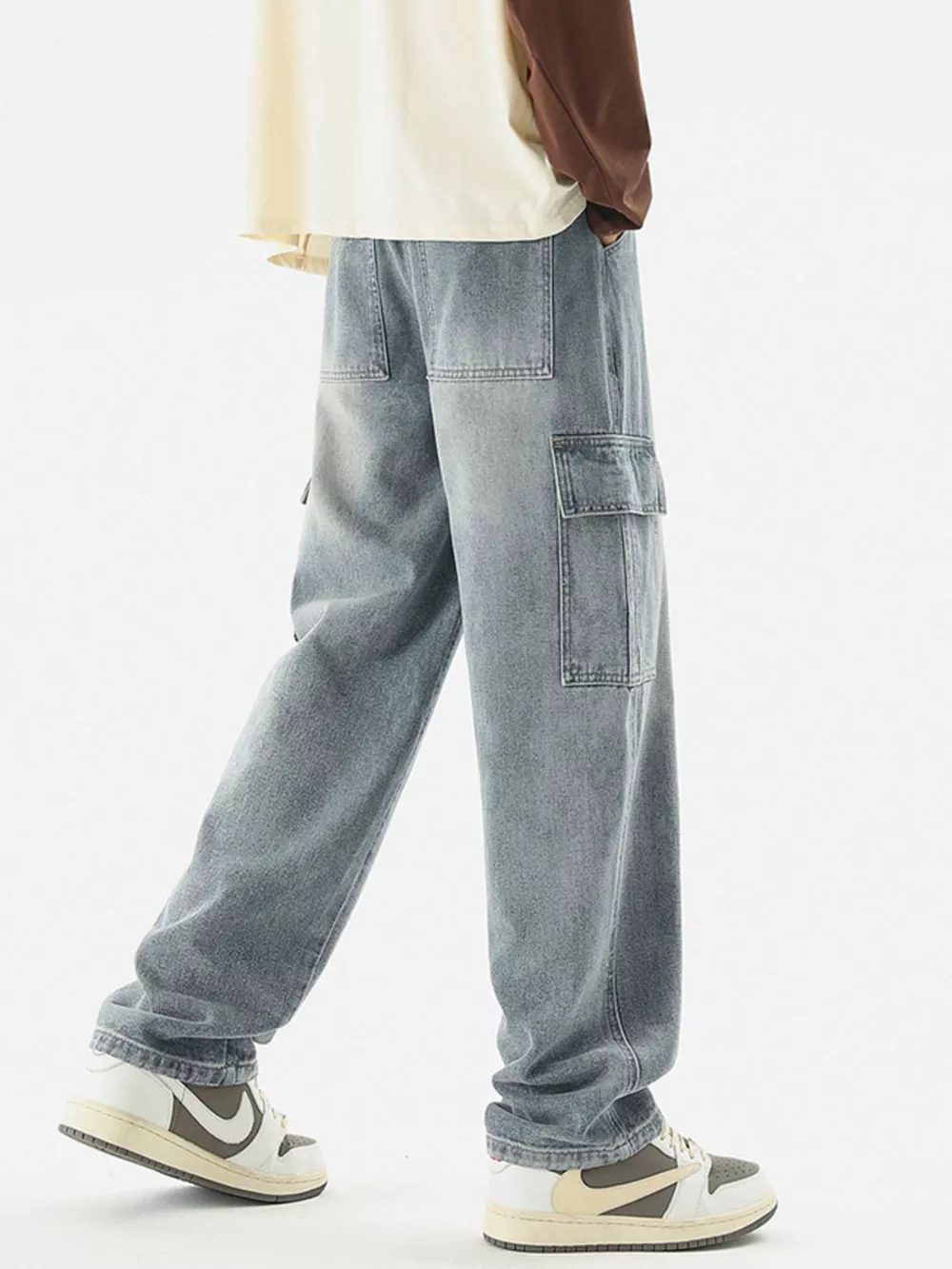 Men's Full Size Wash Relaxed Fit Cargo Jeans Plus Size