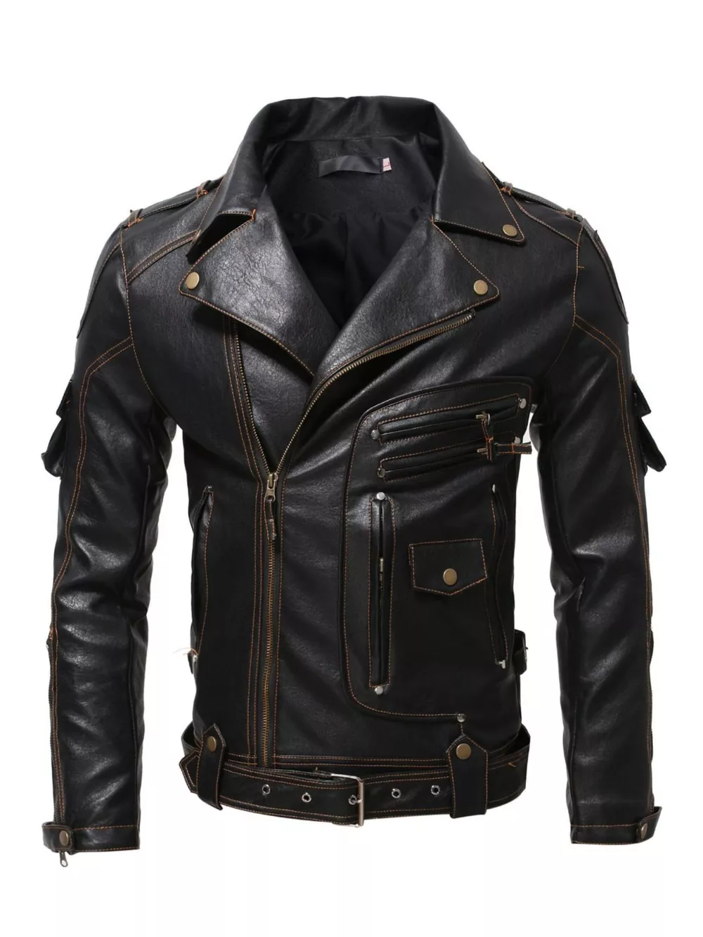 Men's Full Size Faux Leather Motorcycle Jacket Plus Size