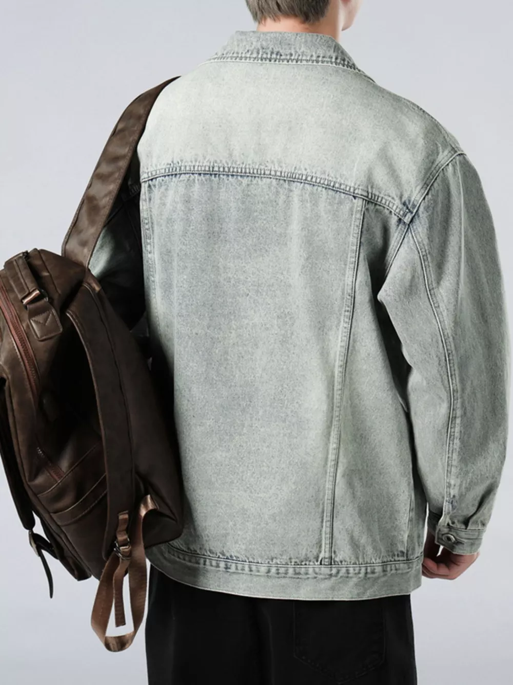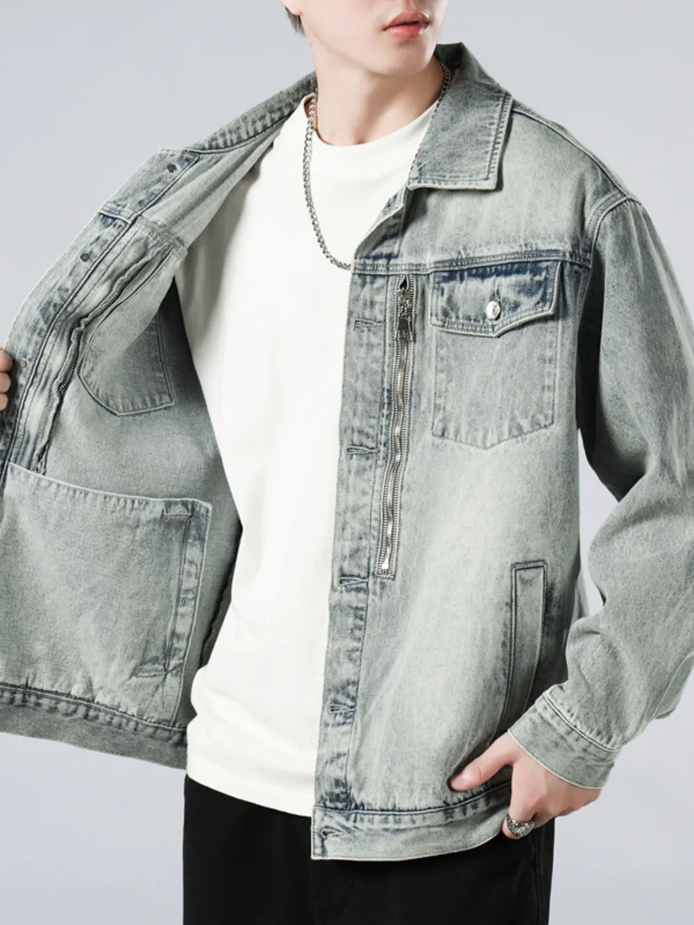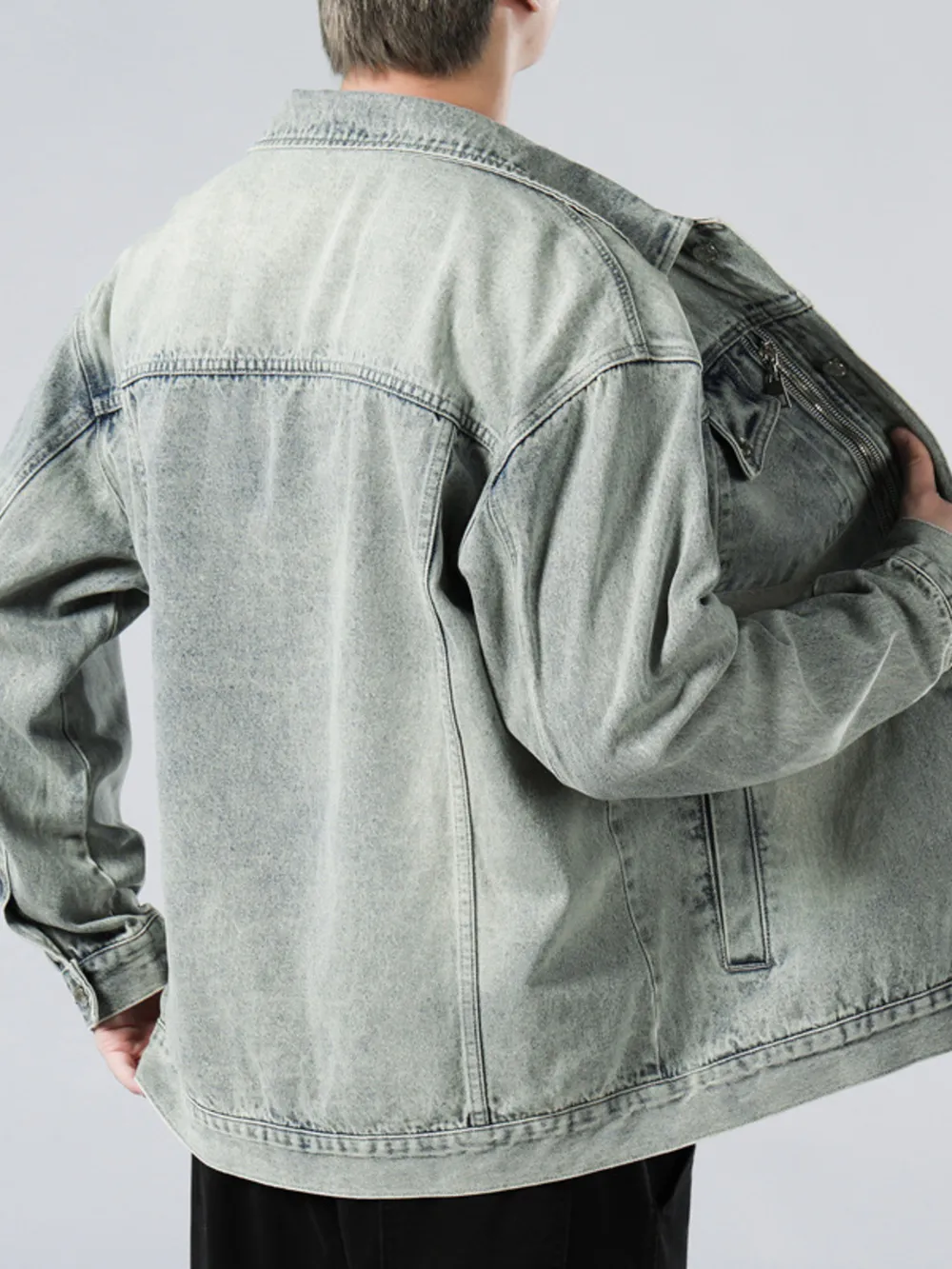 Men's Full Size Wash Button Up Denim Jacket Plus Size