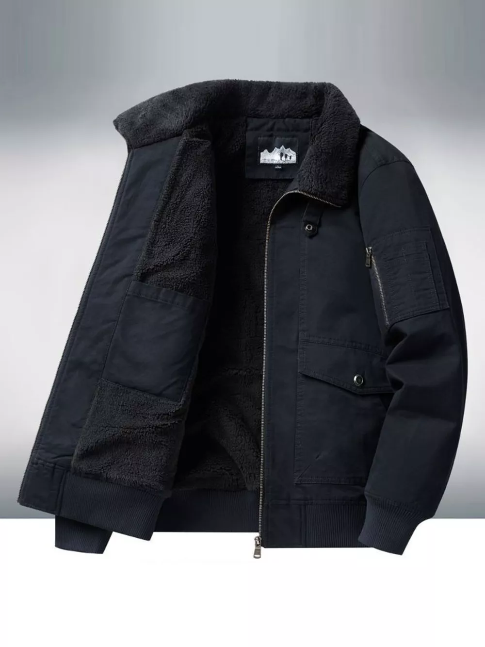 Men's Plus Size Warm Sherpa Lined Zip Up Jacket