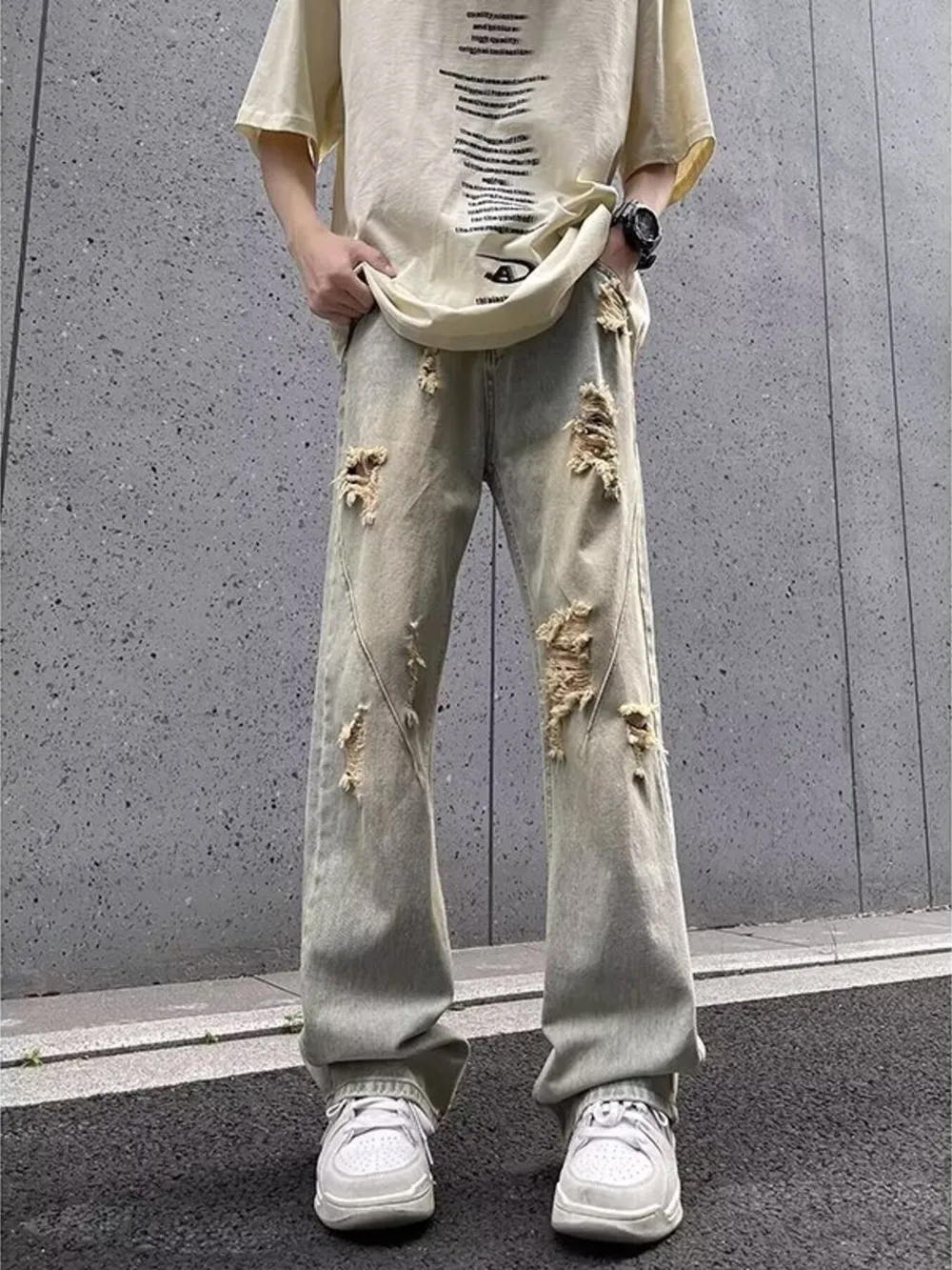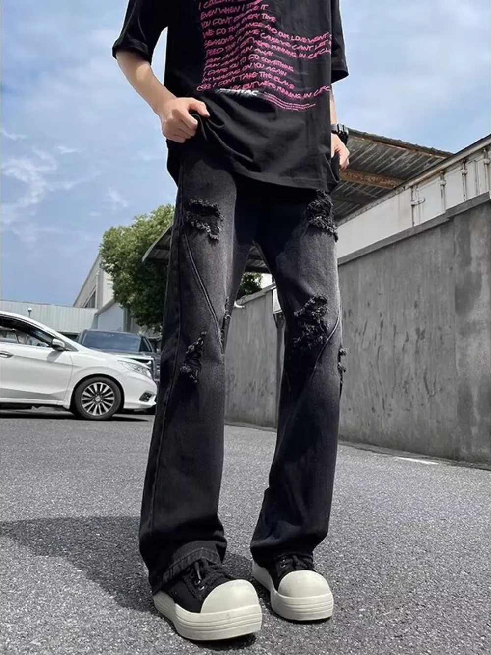Men's Full Size Ripped Distressed Straight Leg Jeans Plus Size