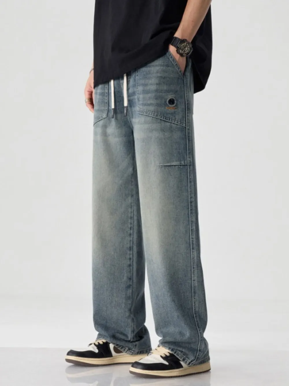 Men's Plus Size Drawstring Washed Wide Leg Jeans