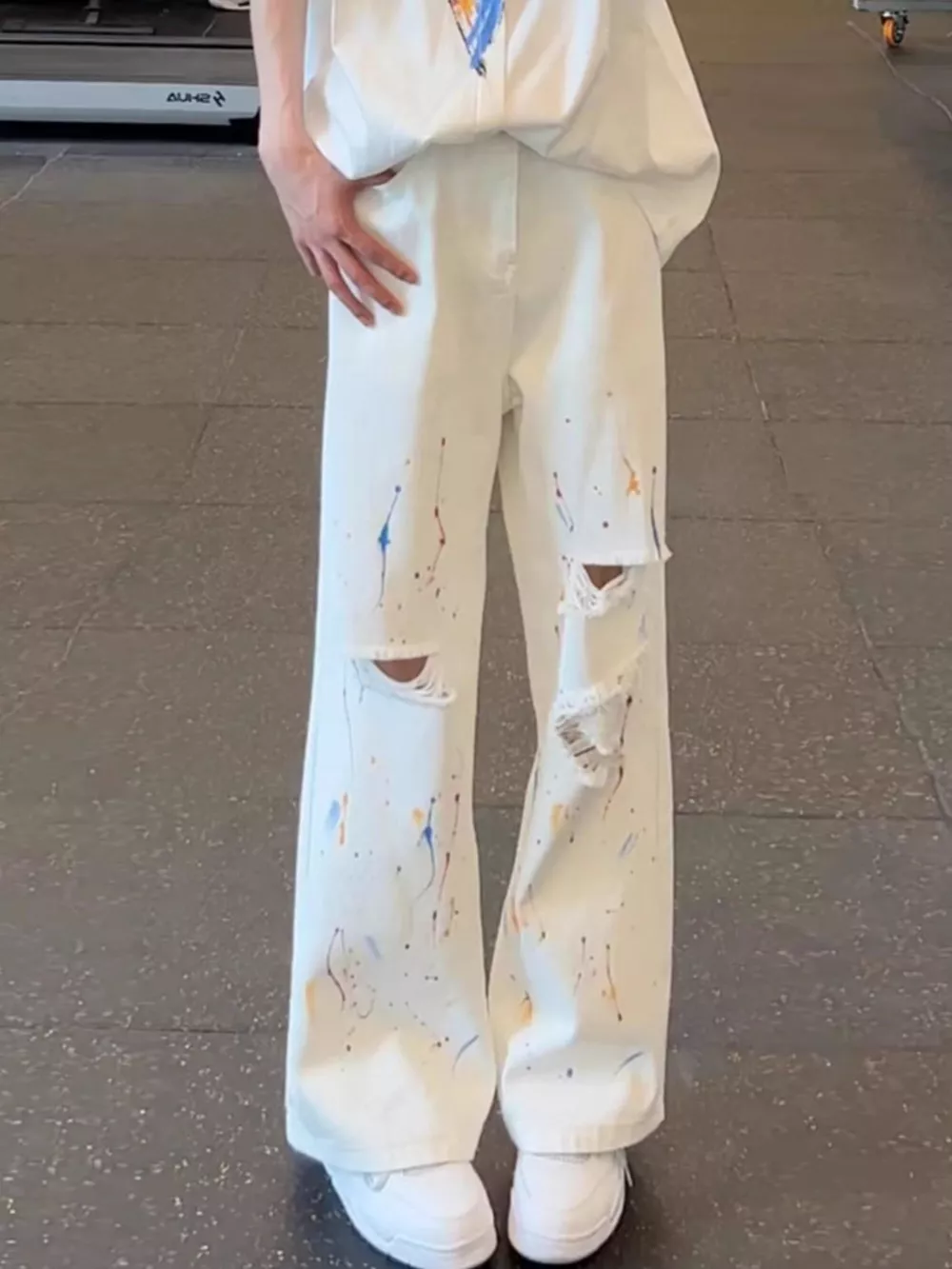 Men's Full Size Loose Fit Distressed Jeans Plus Size