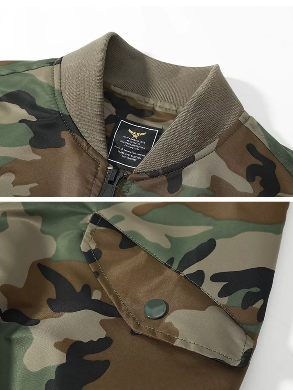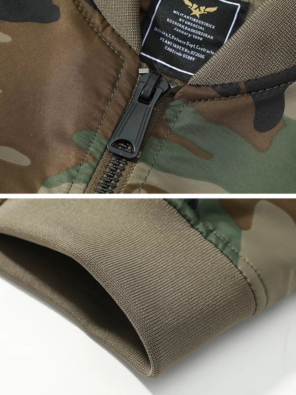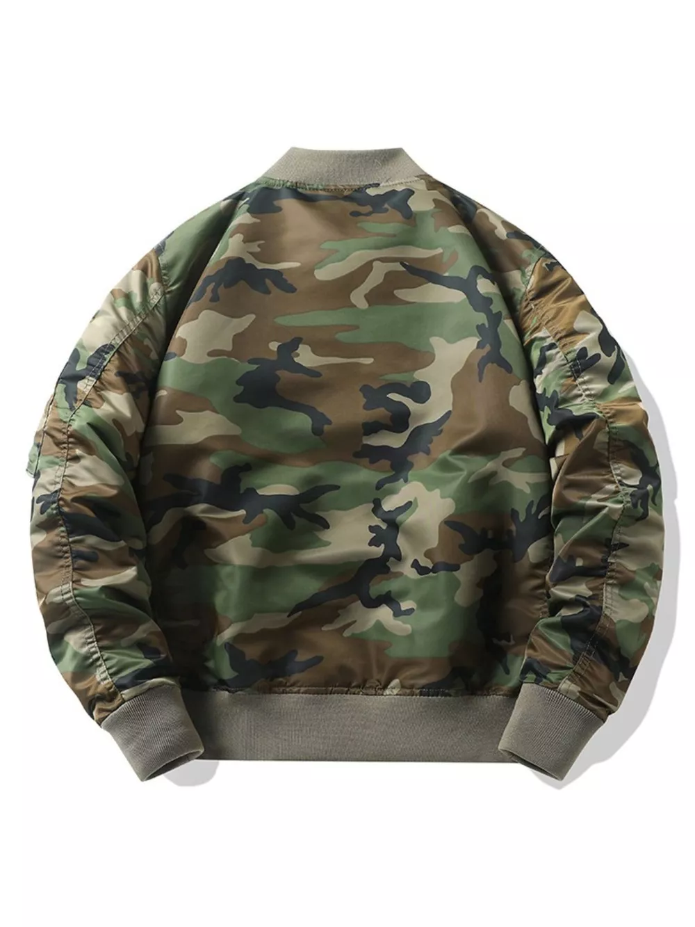 Men's Plus Size Zip Up Camouflage Bomber Jacket