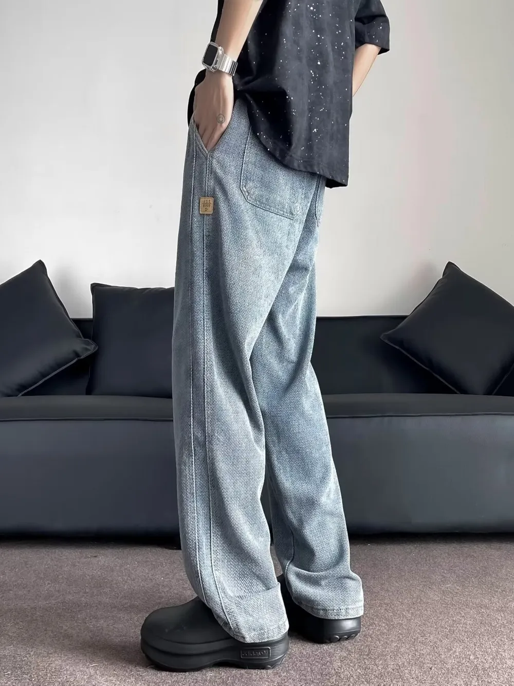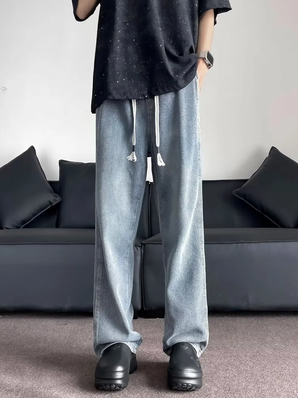 Men's Plus Size Drawstring Washed Wide Leg Jeans