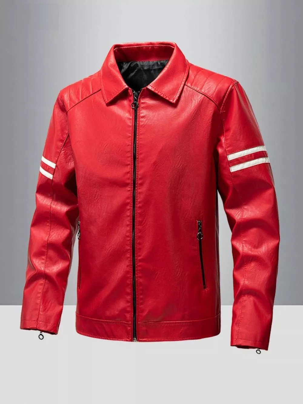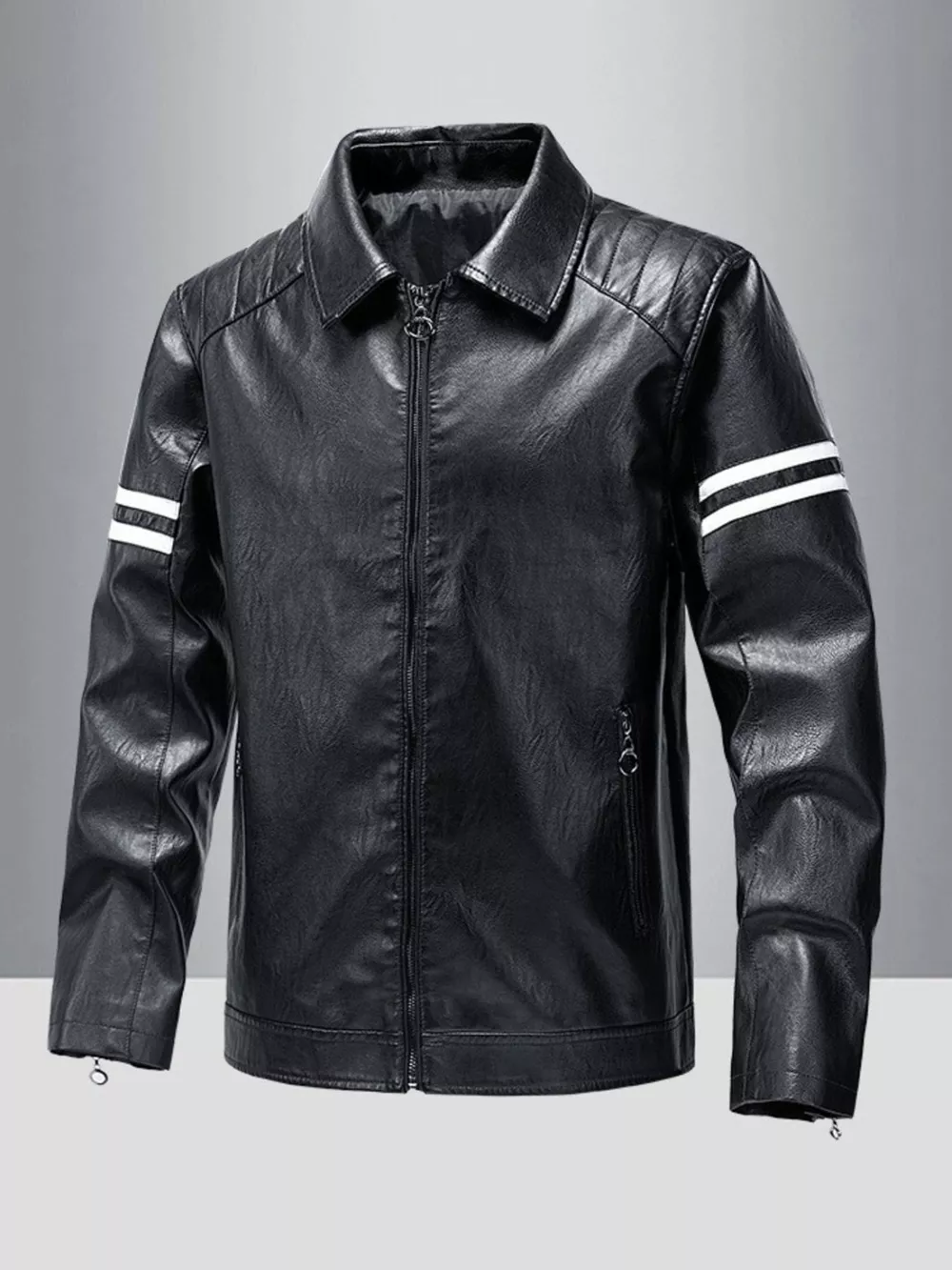 Men's Plus Size Zip Up Leather Motorcycle Jacket