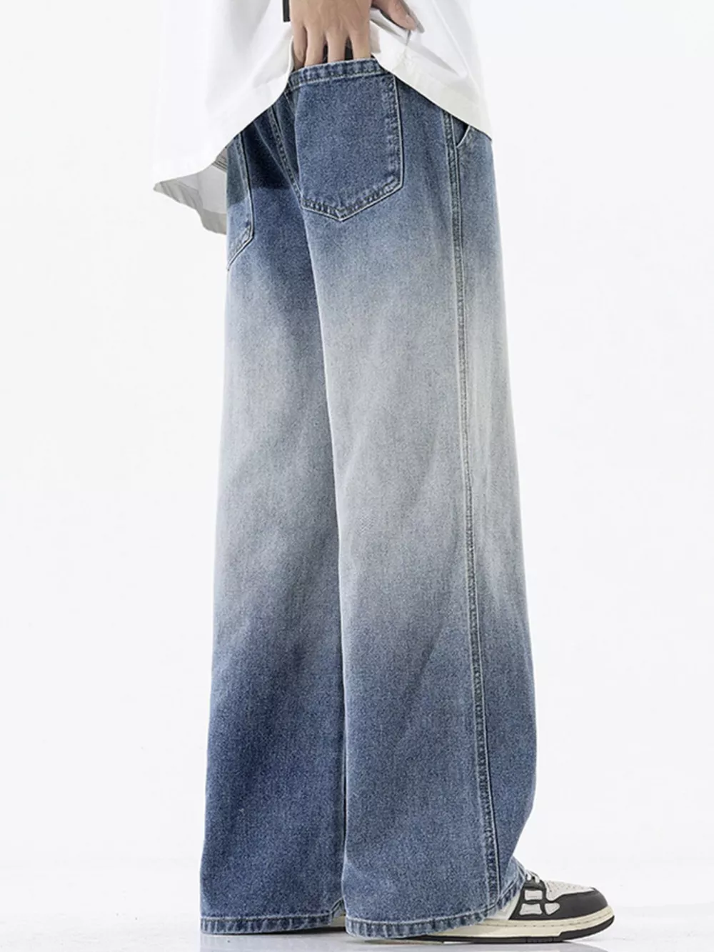 Men's Full Size Gradient Wash Wide Leg Jeans Plus Size