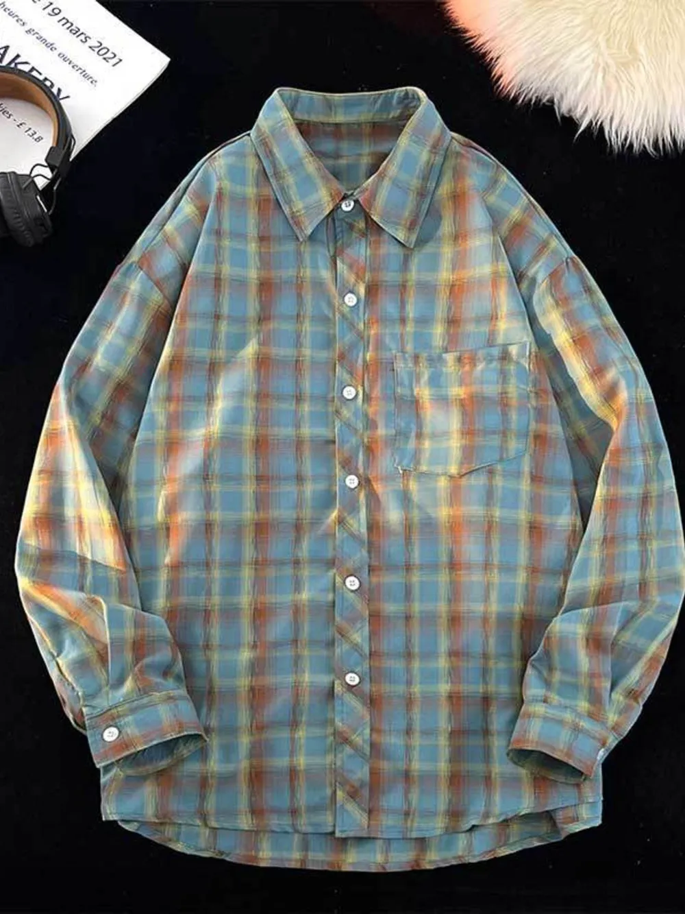 Men's Full Size Plaid Button Up Oversized Shirt Plus Size