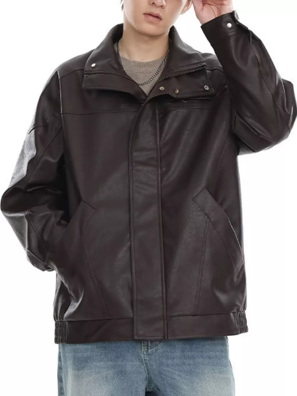 Men's Plus Size Stand Collar Leather Jacket