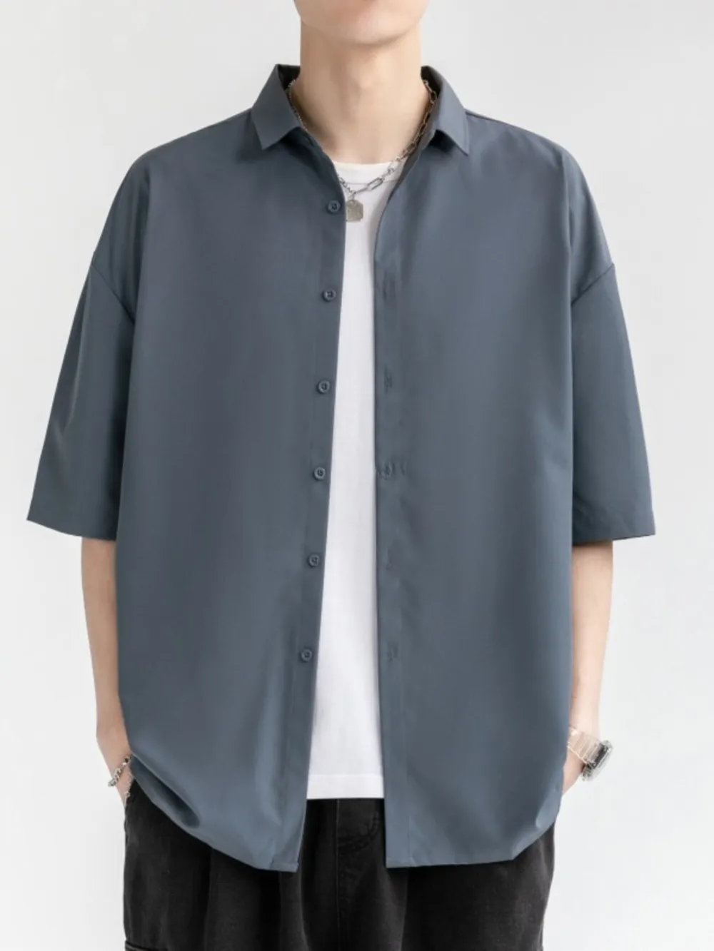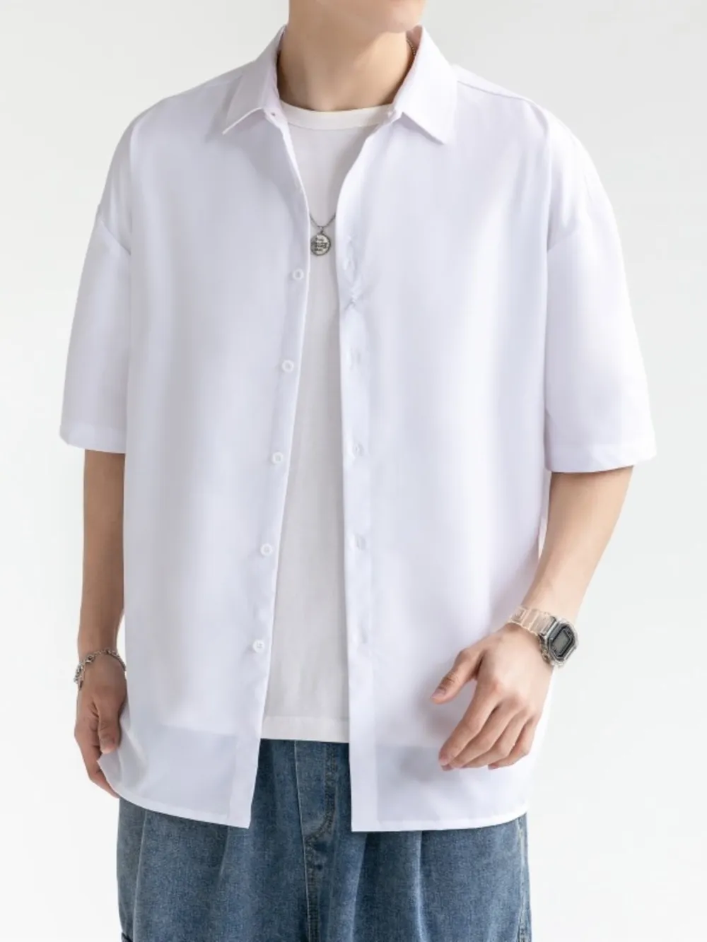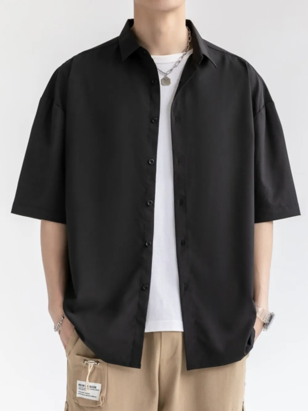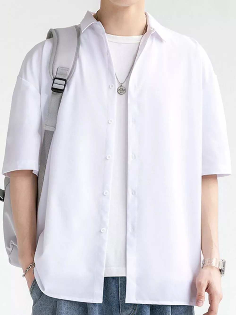 Men's Plus Size Solid Color Casual Short Sleeve Shirt