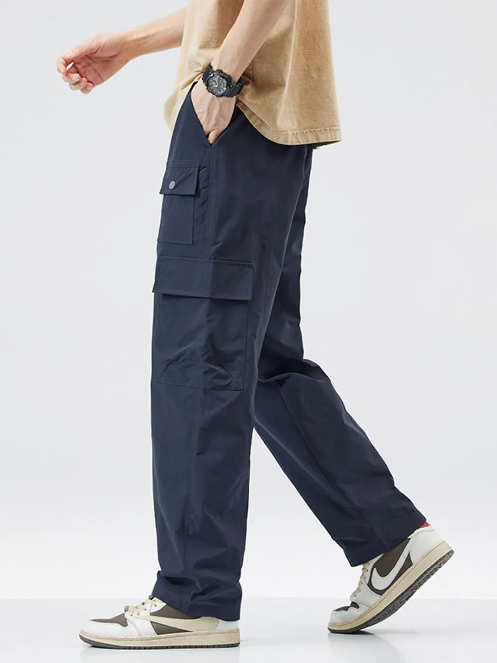 Men's Full Size Relaxed Fit Cargo Pants with Drawstring Plus Size