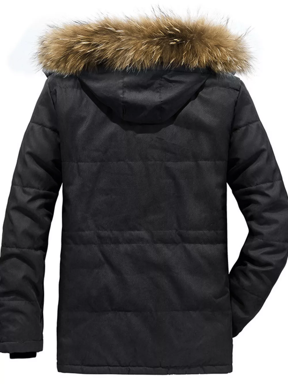 Men's Plus Size Winter Warm Zip Up Coat with Fur Hood