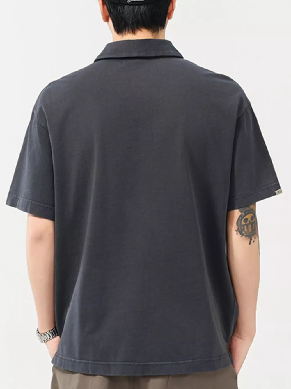 Men's Plus Size Vintage Washed Pocket Polo Shirt