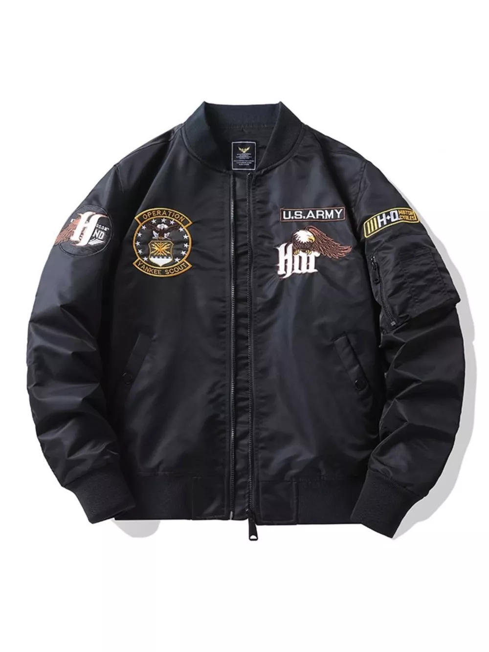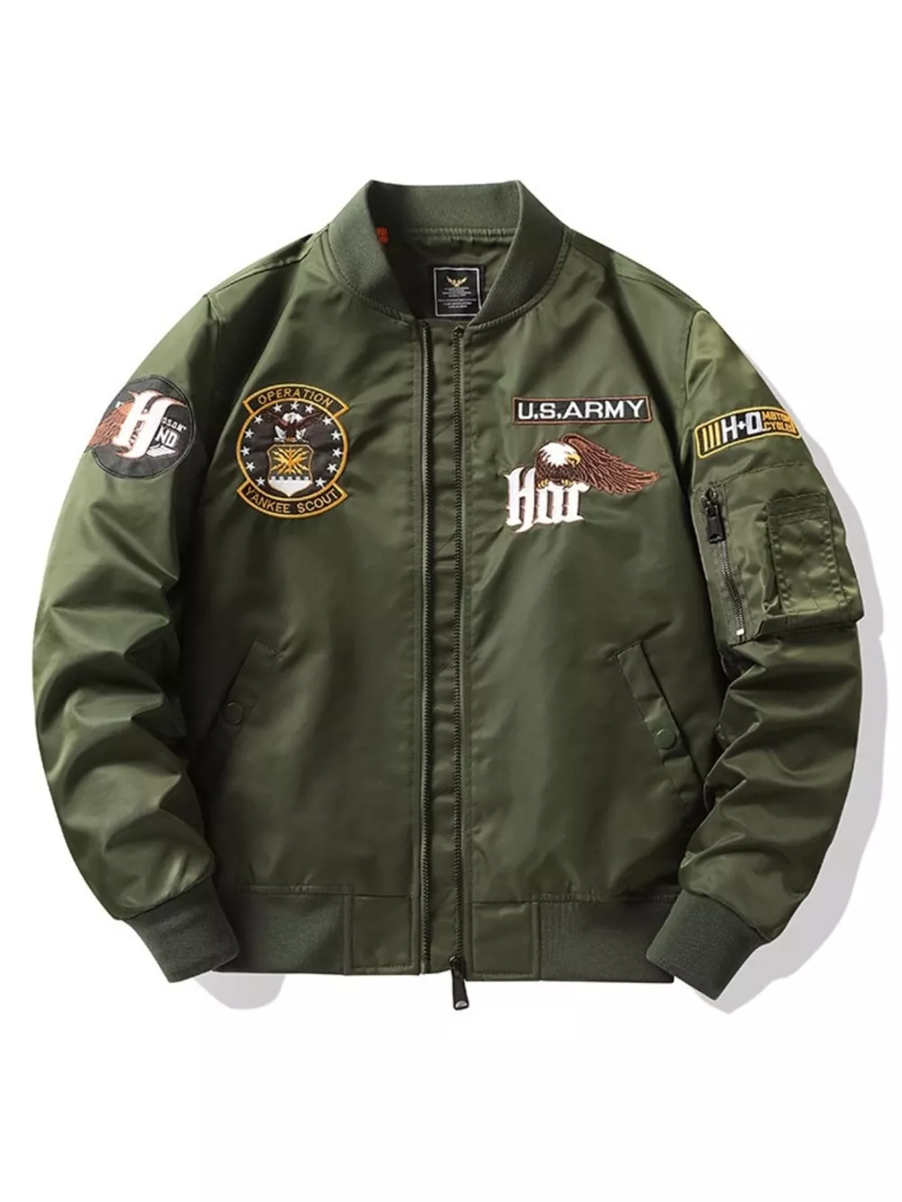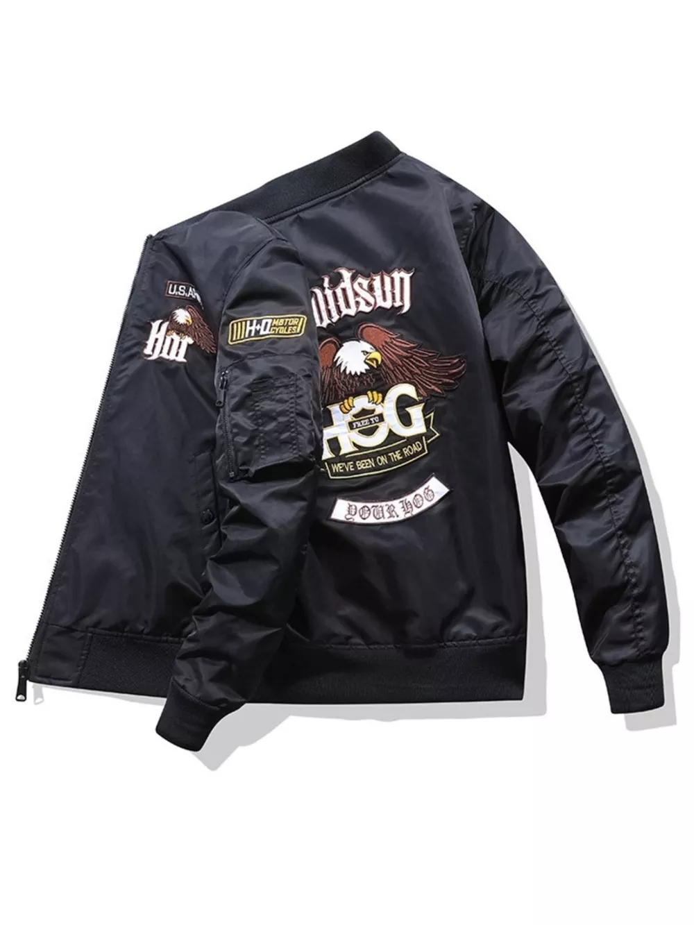Men's Plus Size Embroidered Zip Up Bomber Jacket