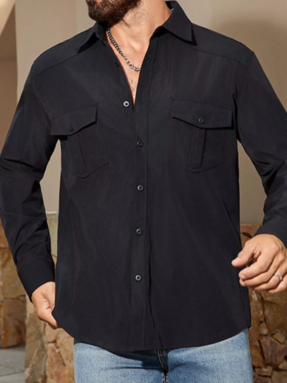Men's Solid Color Long Sleeve Button-Up Shirt