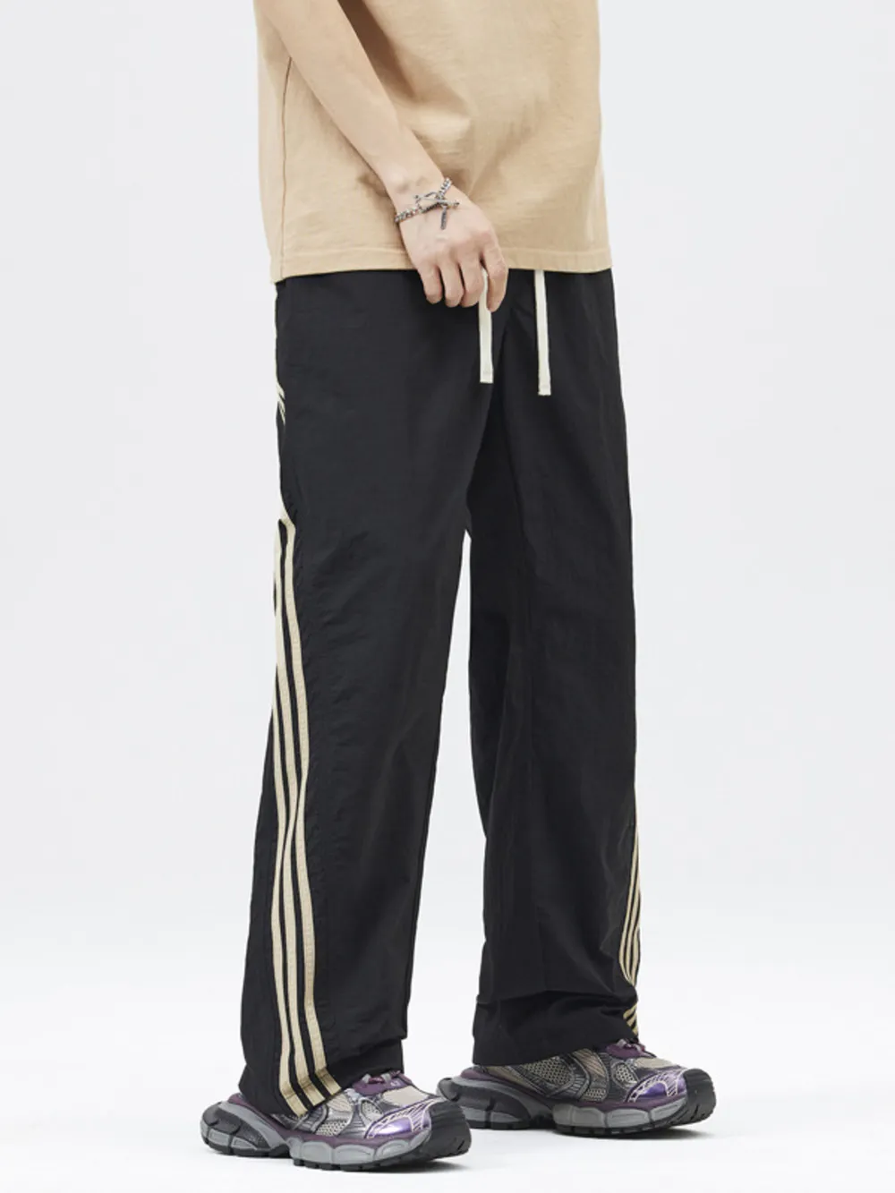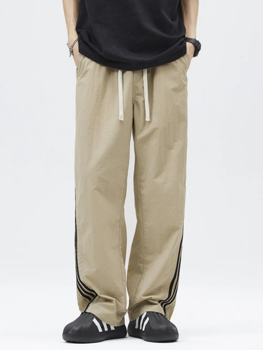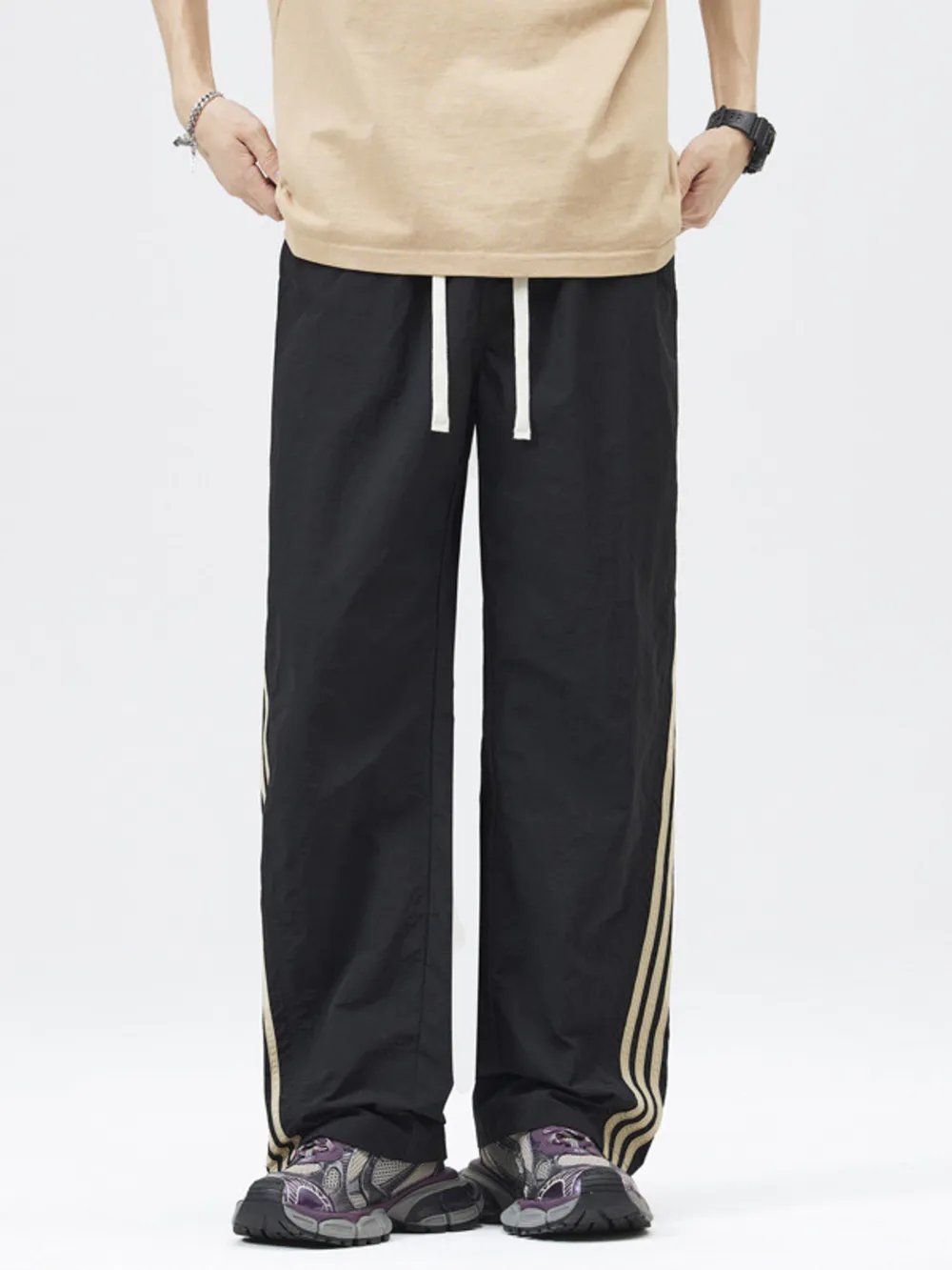 Men's Full Size Casual Loose Fit Drawstring Pants with Side Stripes Plus Size