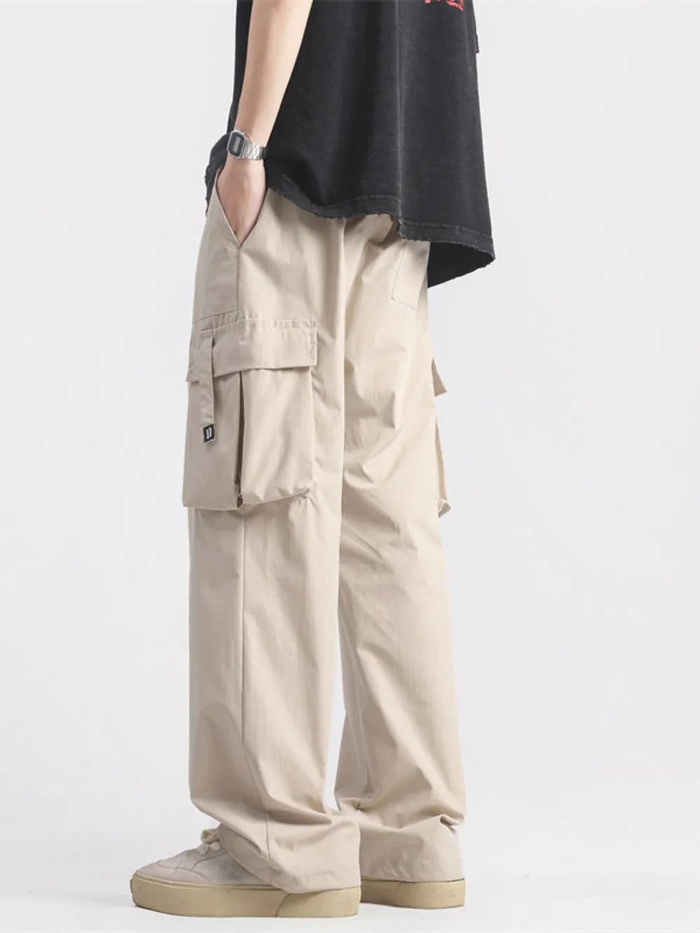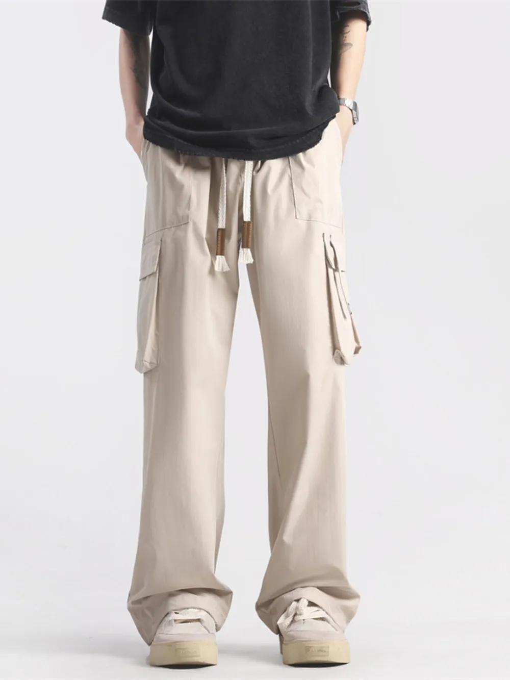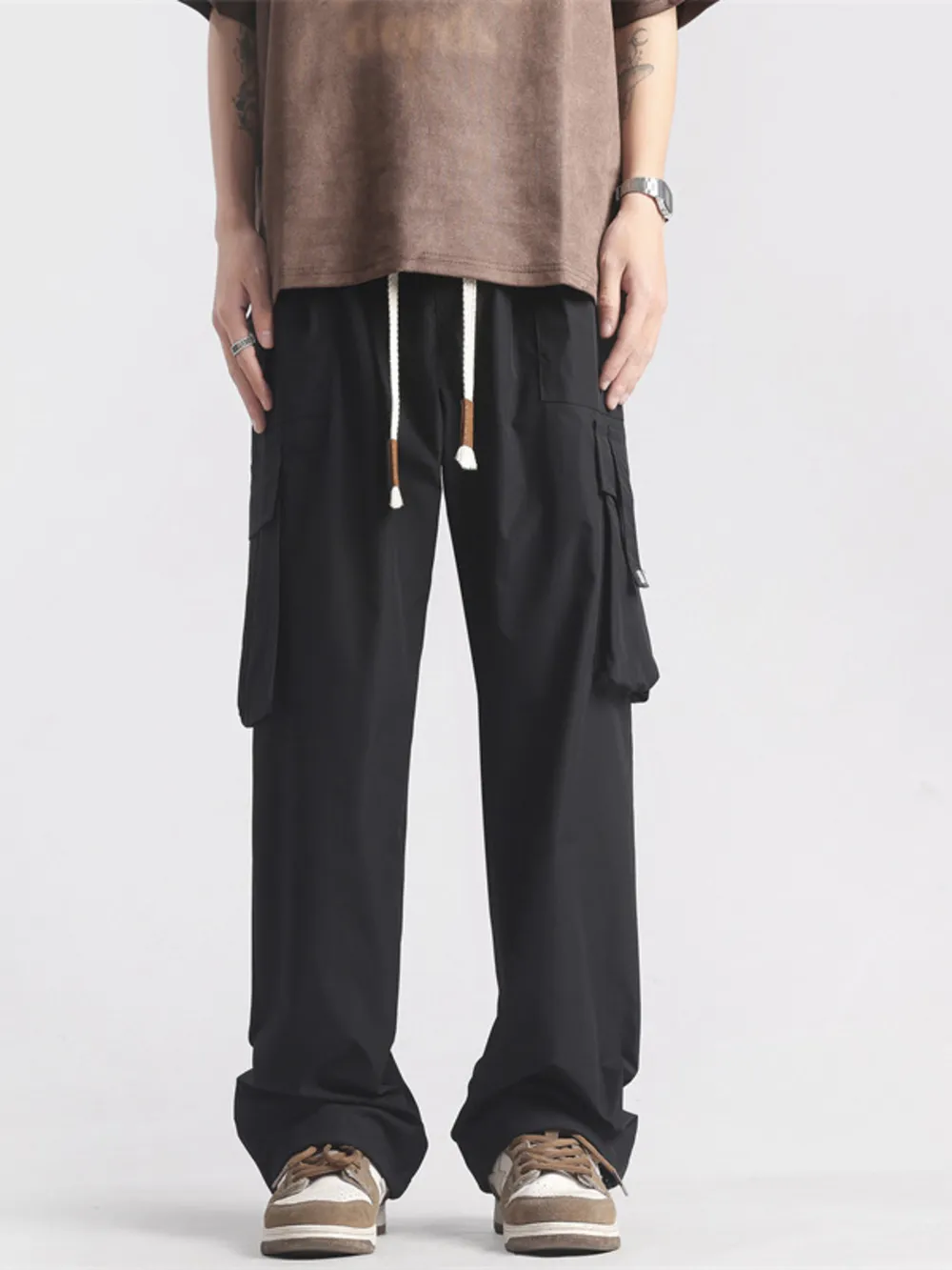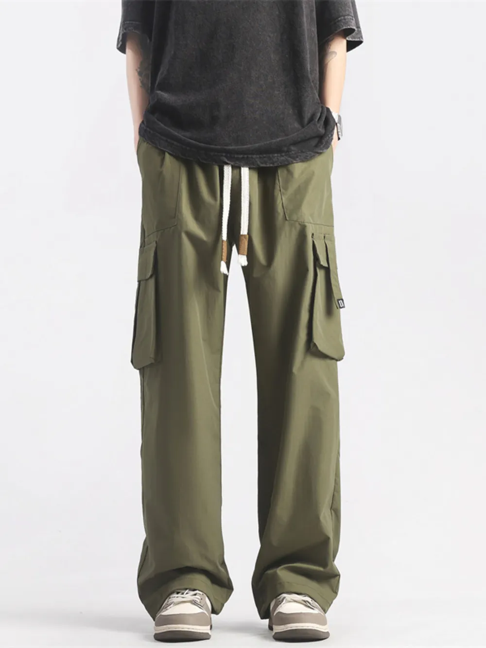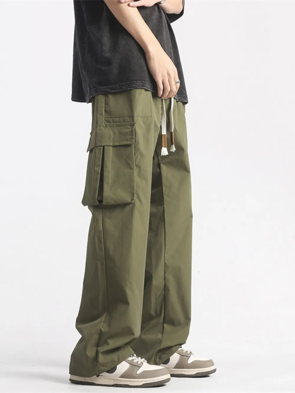Men's Plus Size Loose Fit Cargo Pants with Drawstring