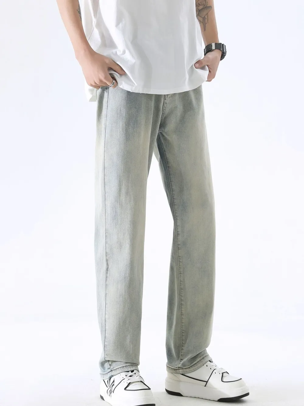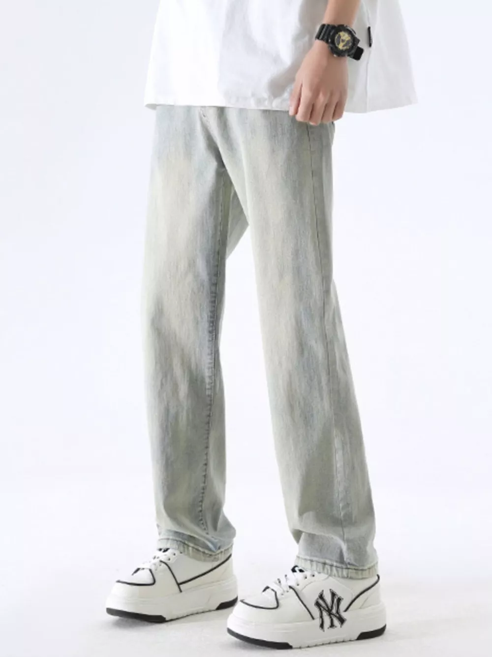 Men's Full Size Wash Wide Leg Jeans Plus Size