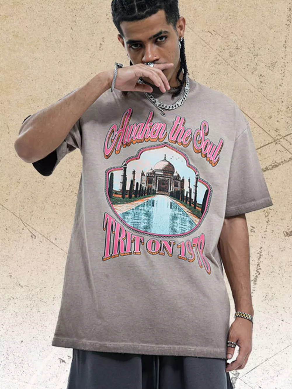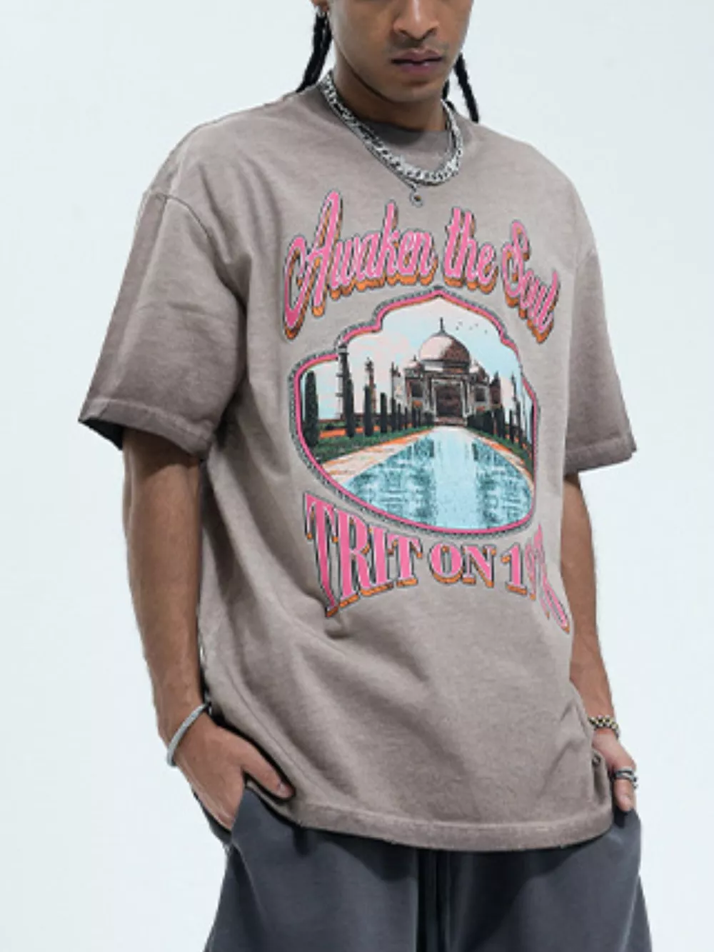Men's Vintage Wash Graphic Round Neck T-Shirt