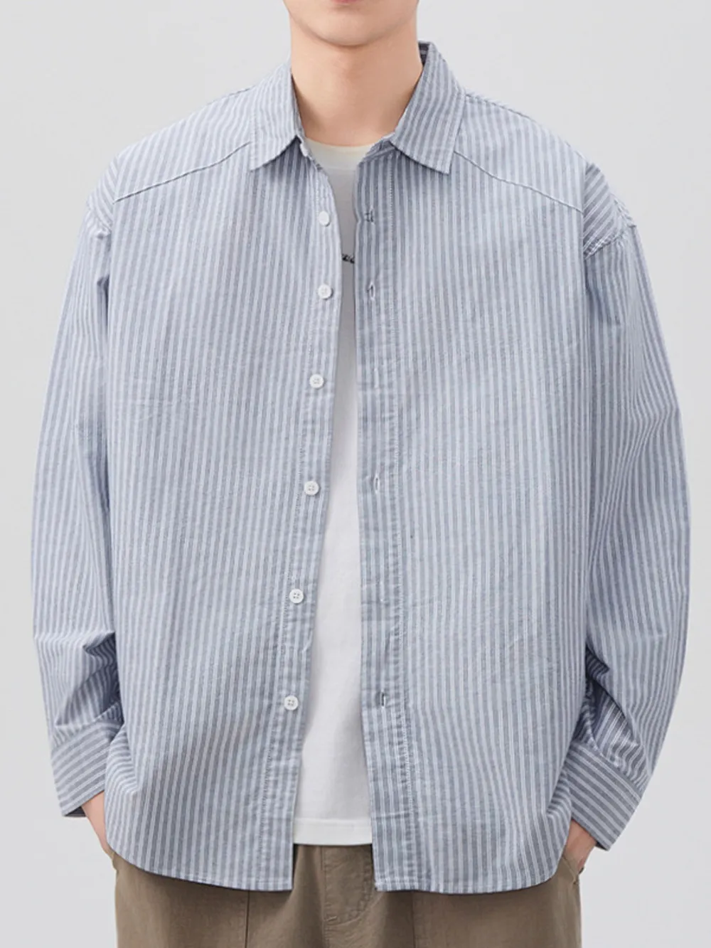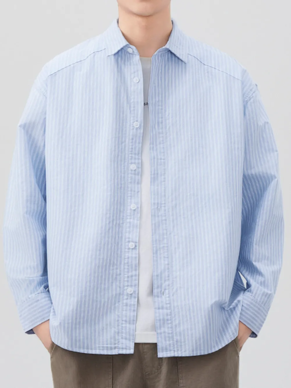 Men's Plus Size Casual Striped Long Sleeve Shirt