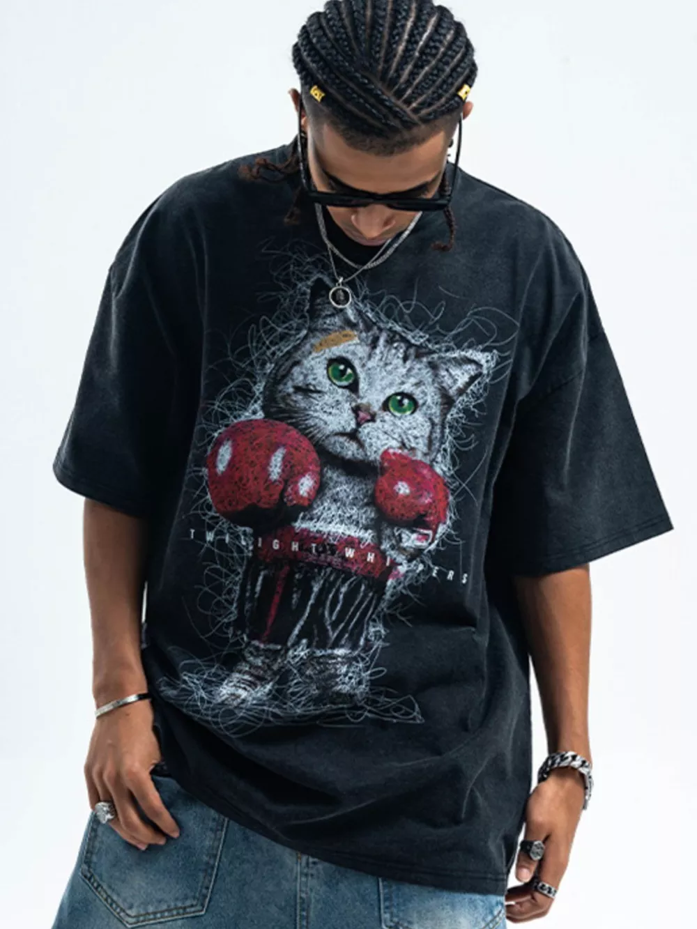 Men's Cat Graphic Vintage Wash T-Shirt