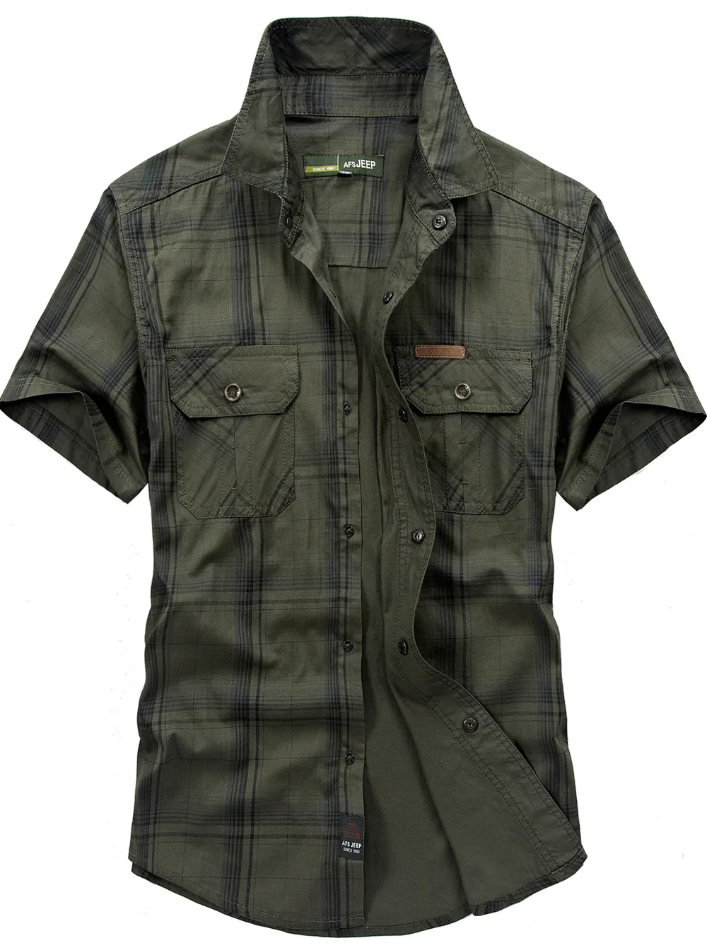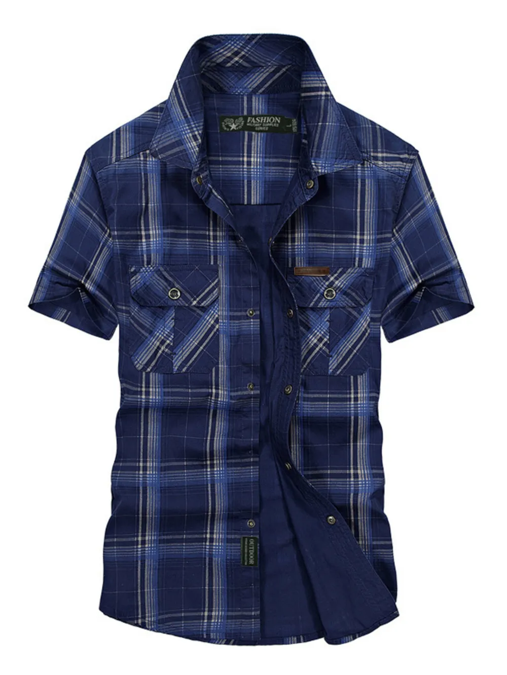 Men's Plus Size Casual Plaid Short Sleeve Shirt