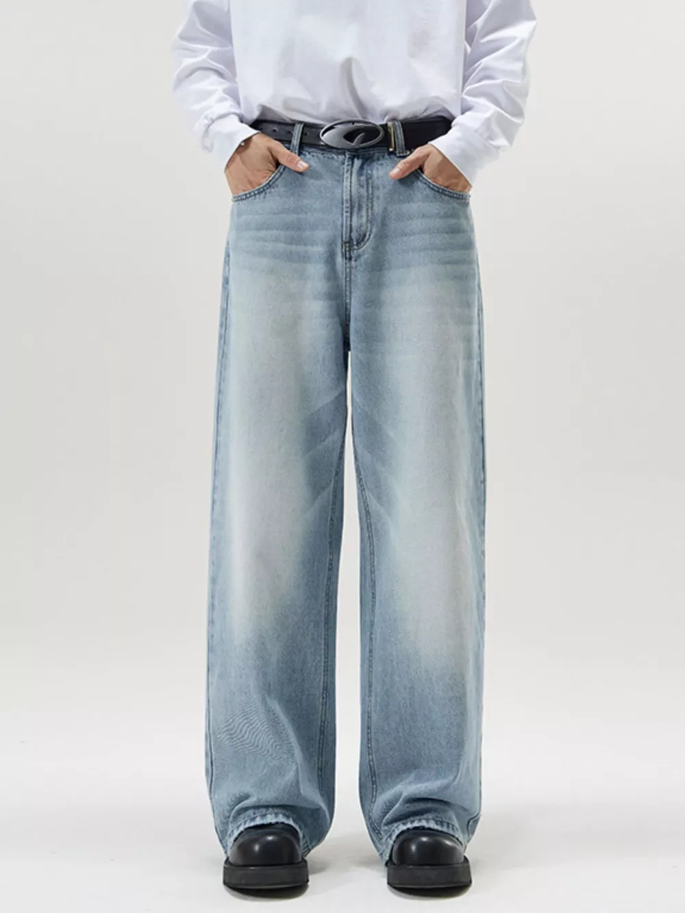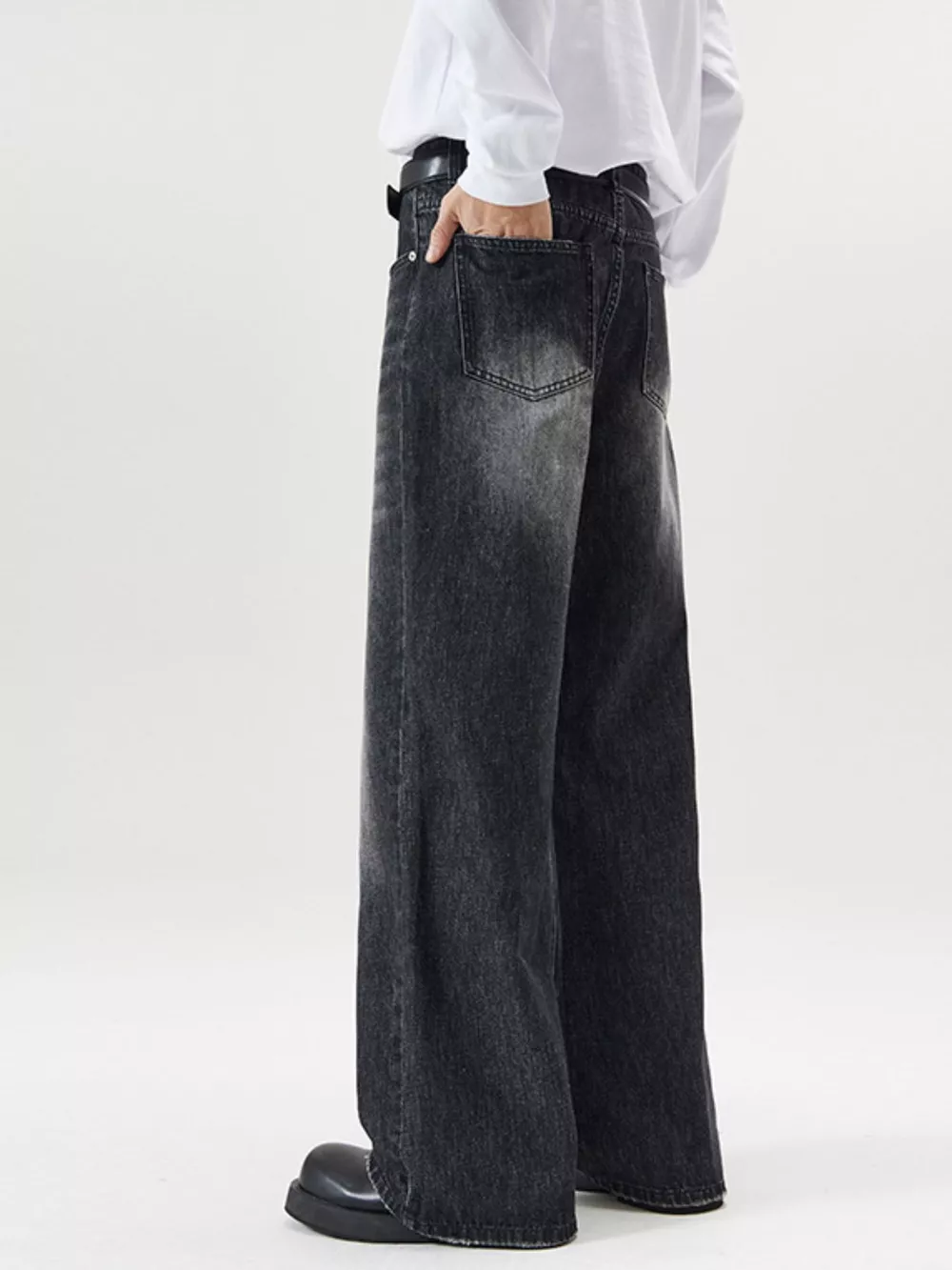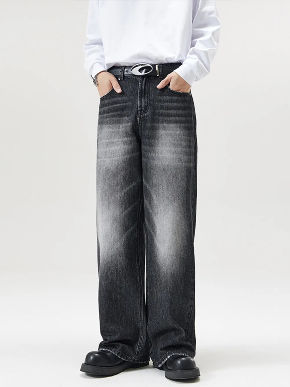 Men's Full Size Wash Wide Leg Jeans Plus Size