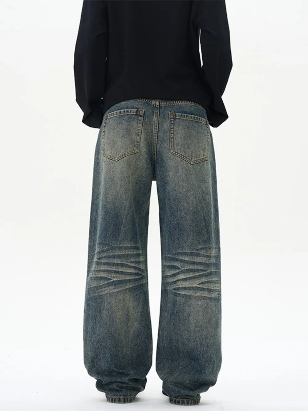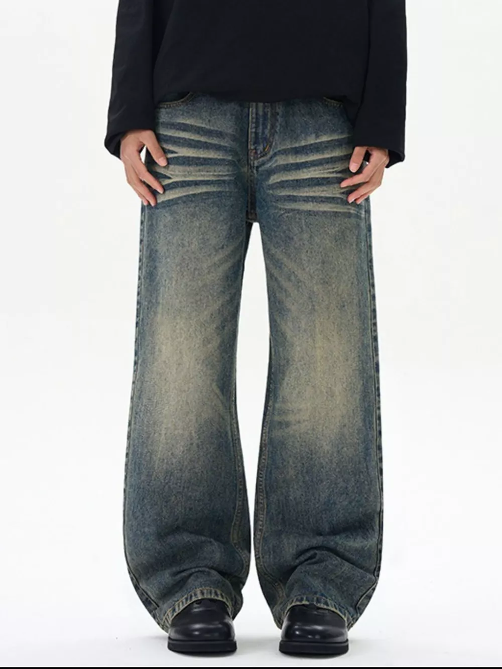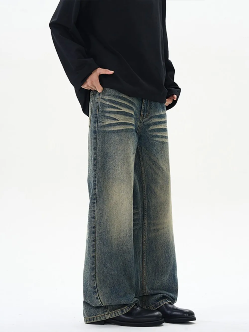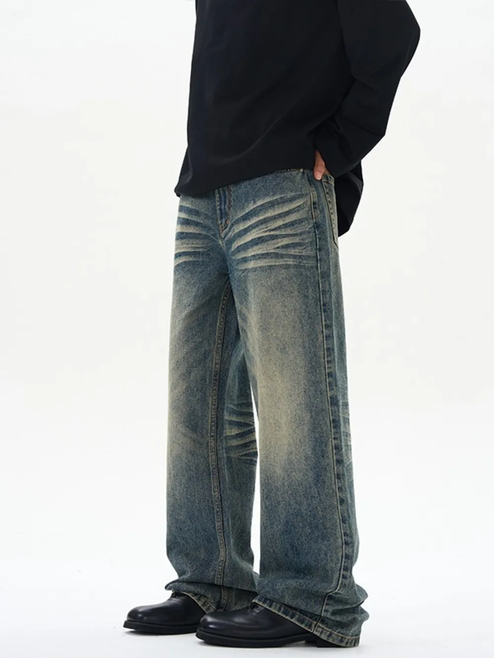 Men's Full Size Wash Wide Leg Jeans Plus Size