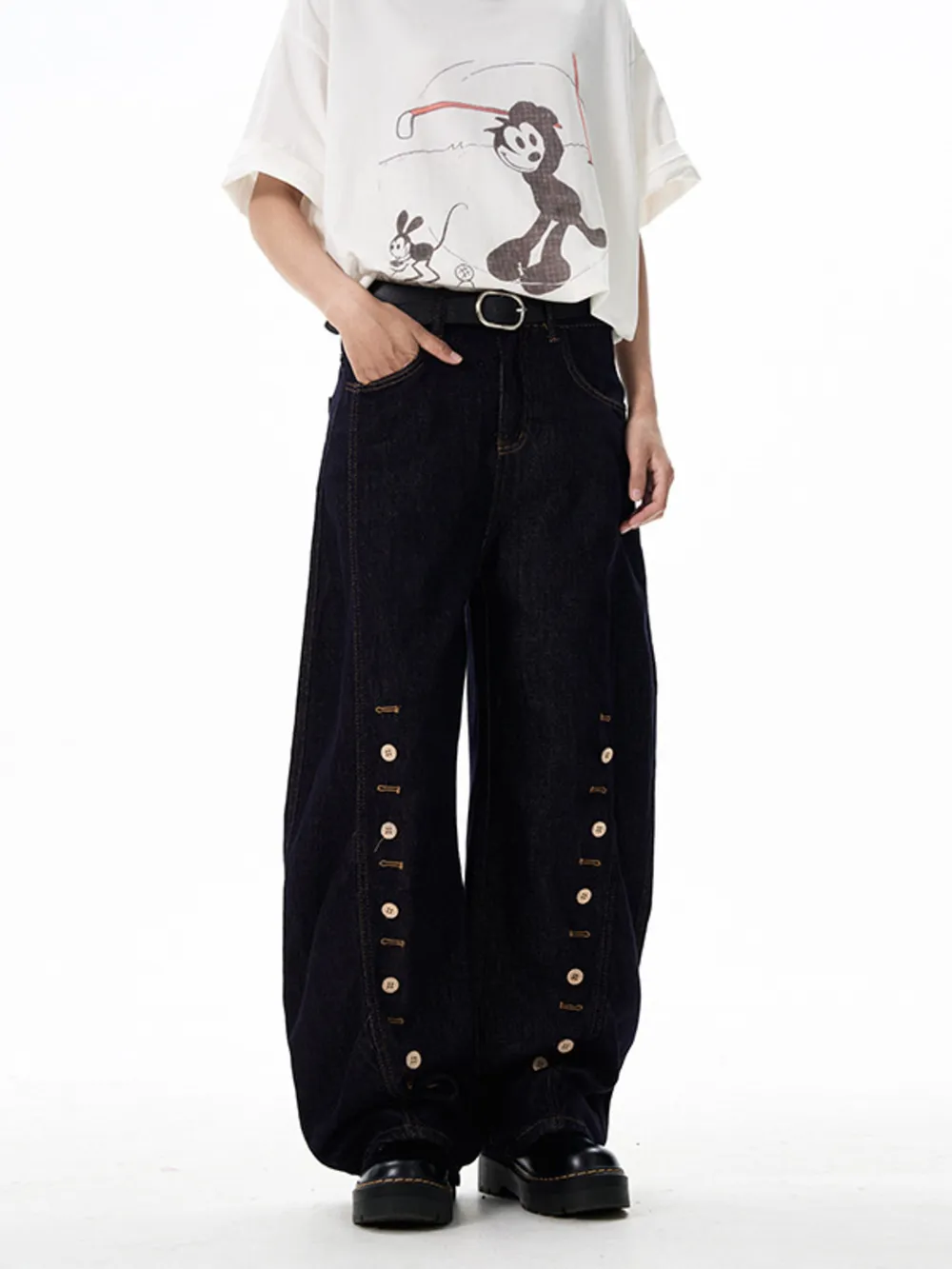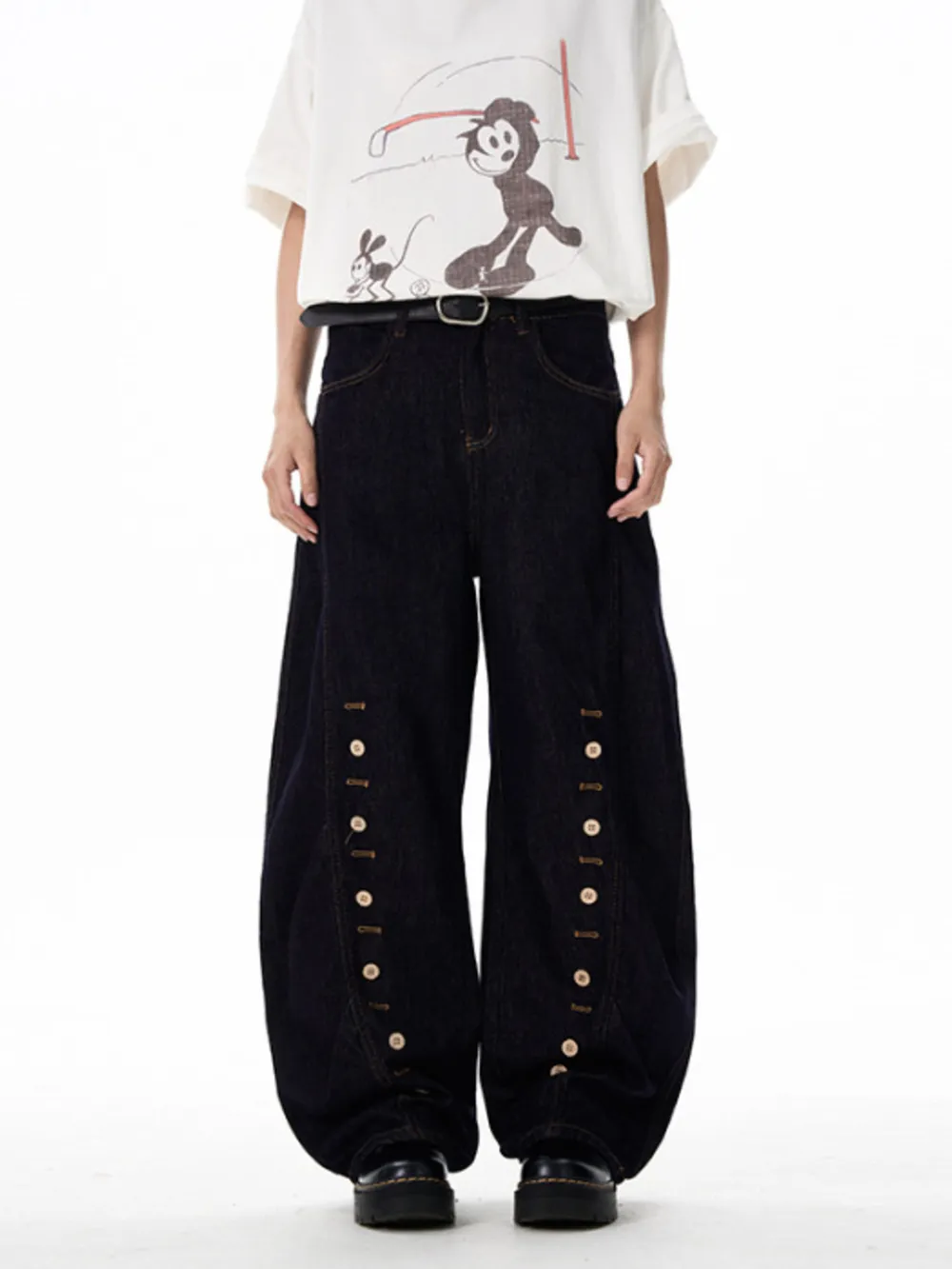 Men's Button-Accented Wide Leg Jeans