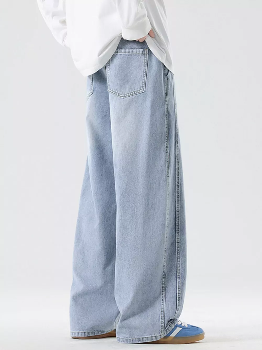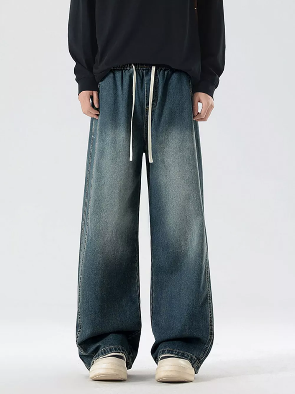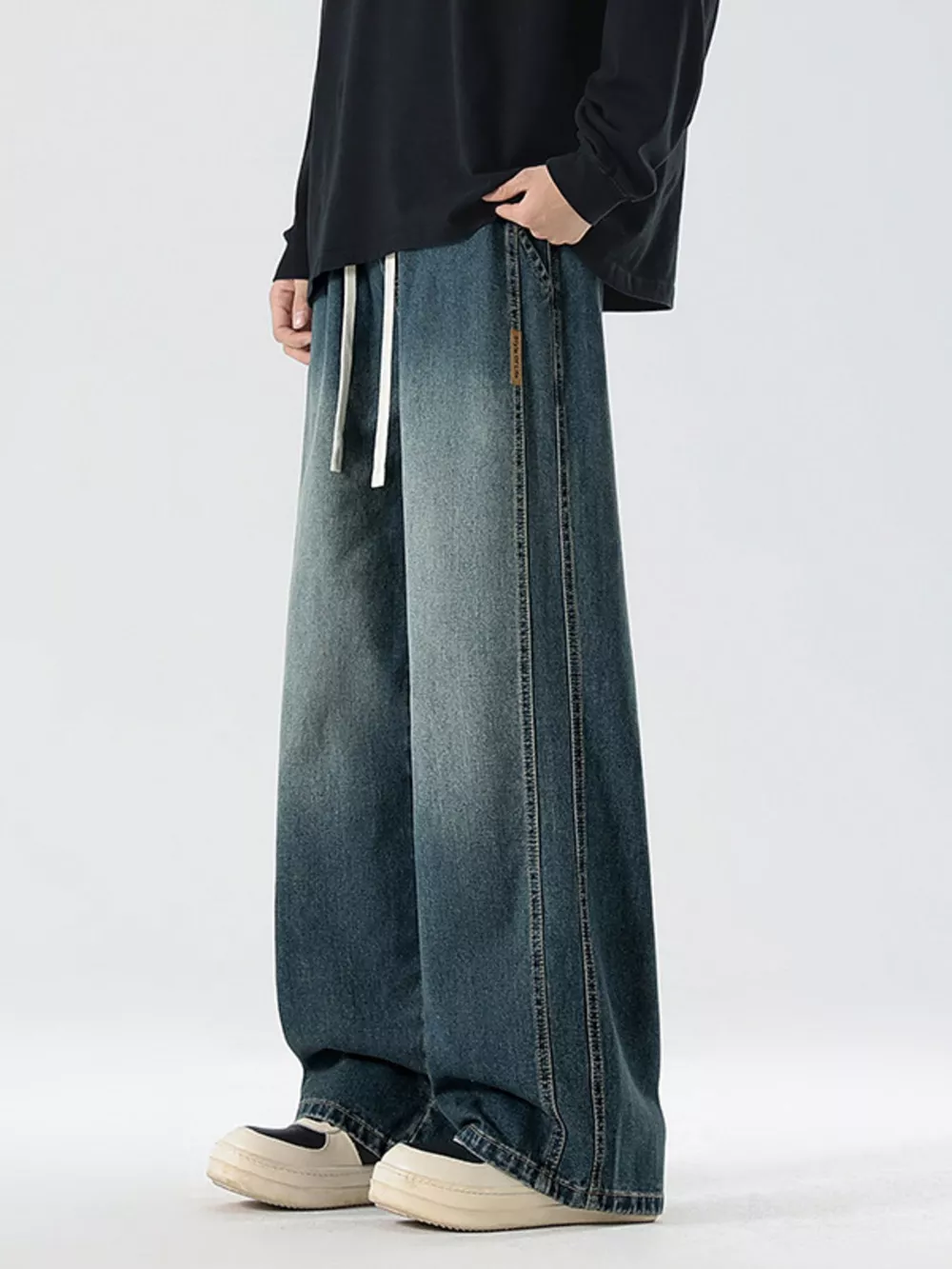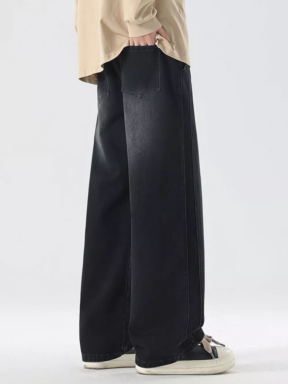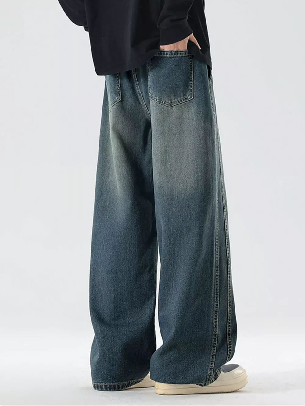 Men's Full Size Wash Wide Leg Jeans Plus Size