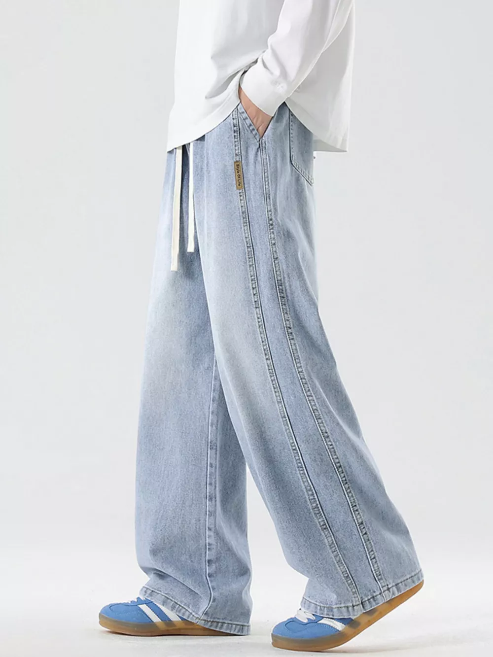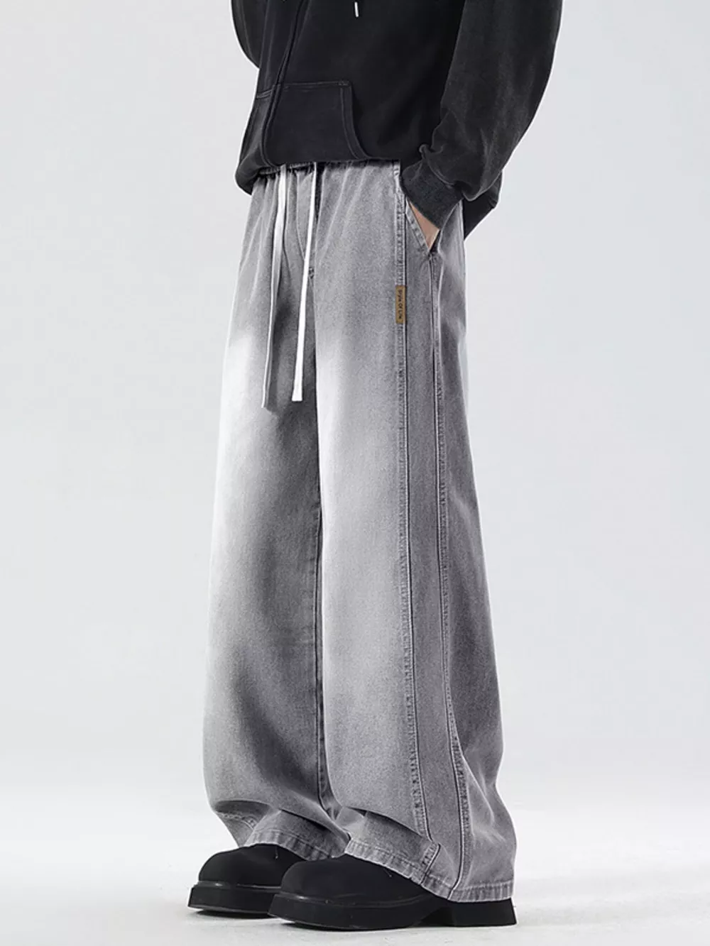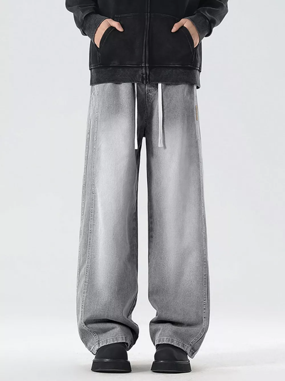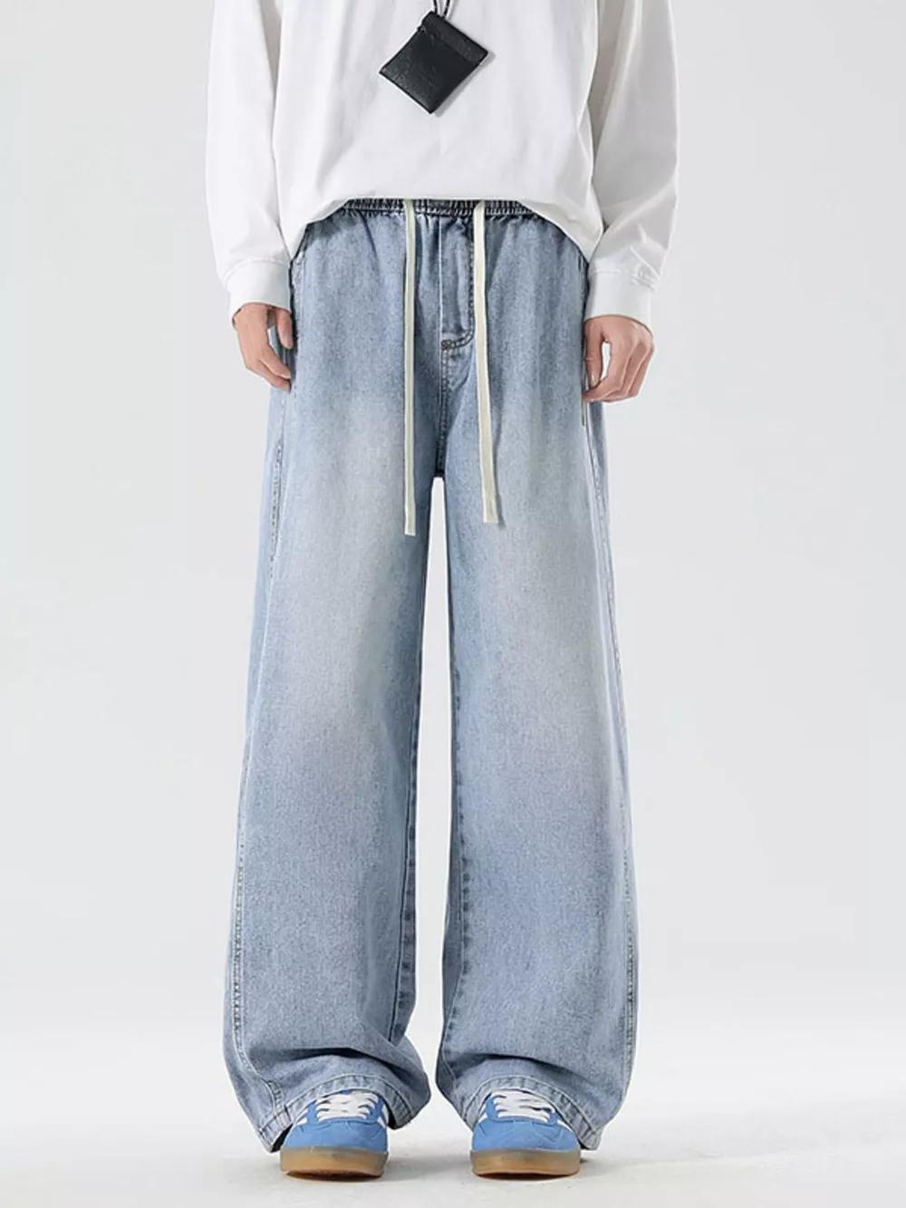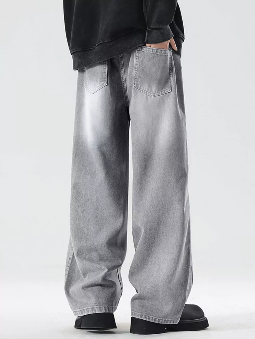 Men's Full Size Wash Wide Leg Jeans Plus Size