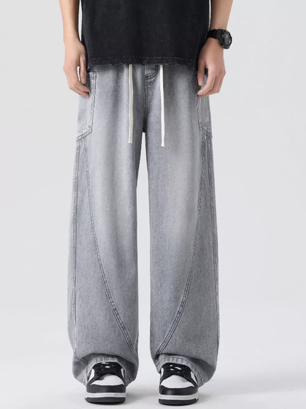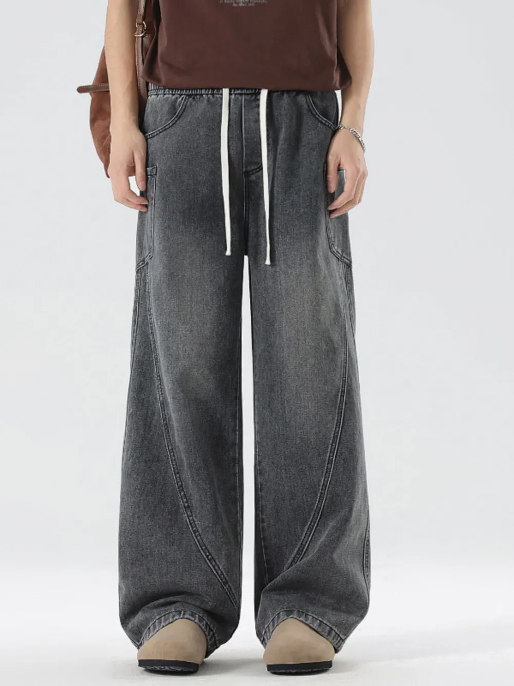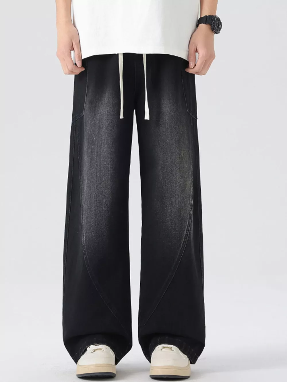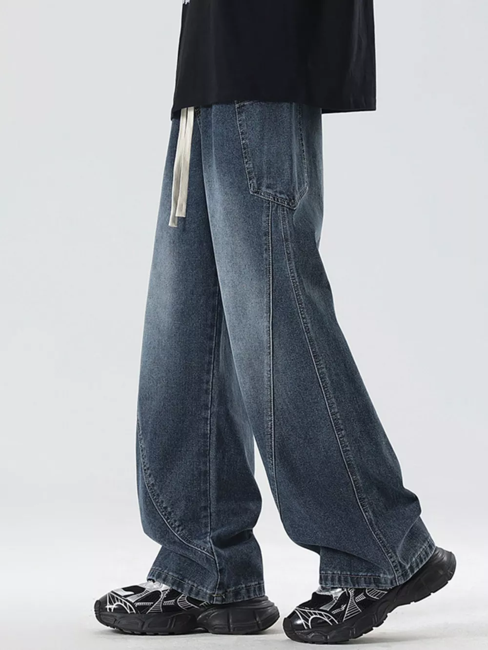 Men's Full Size Wide Leg Wash Denim Jeans Plus Size