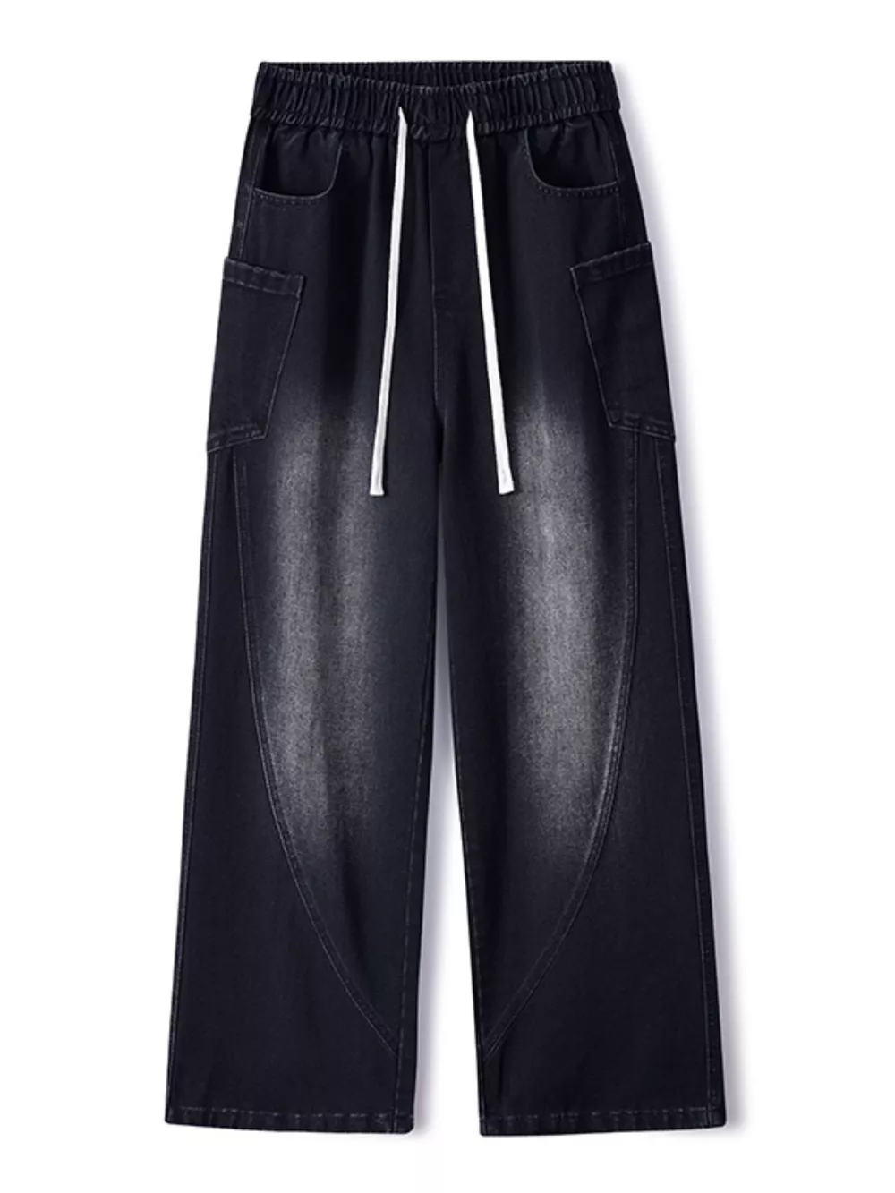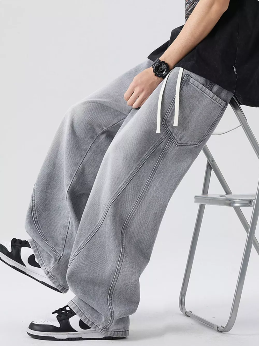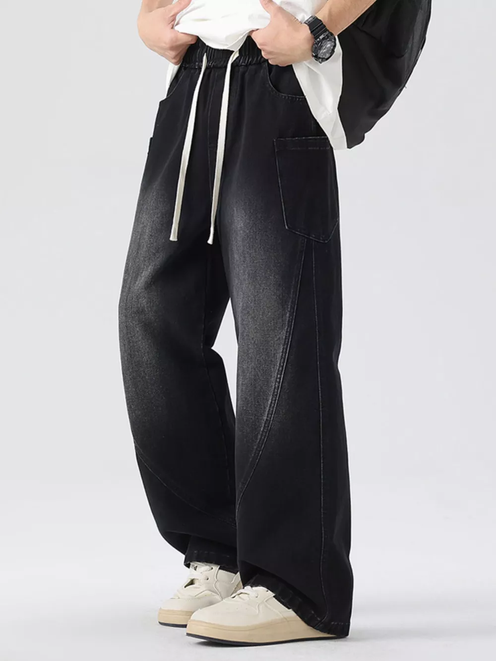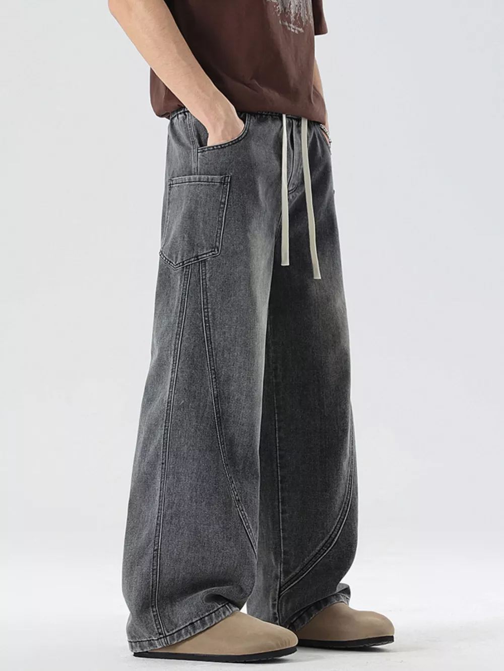 Men's Full Size Wide Leg Wash Denim Jeans Plus Size