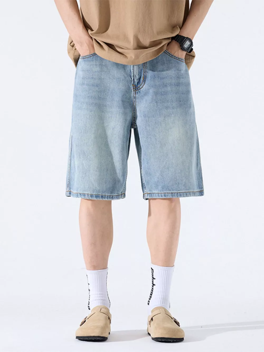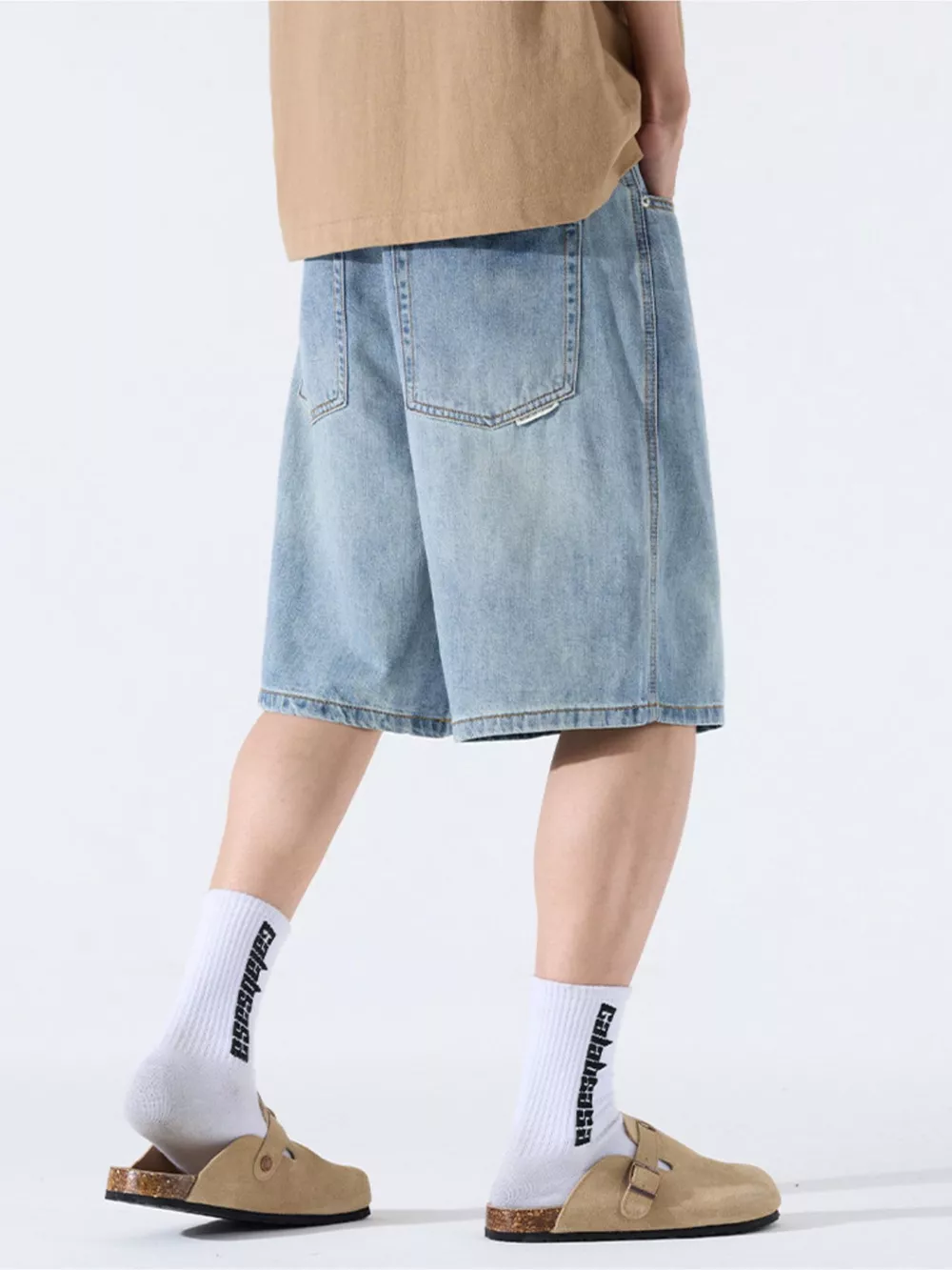 Men's Loose Fit Wash Denim Shorts