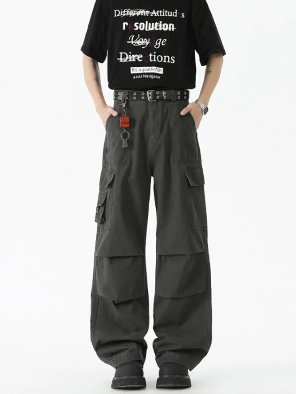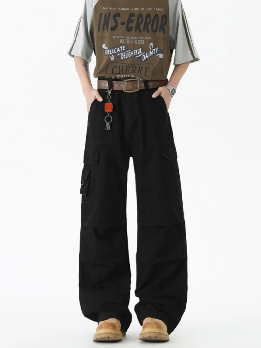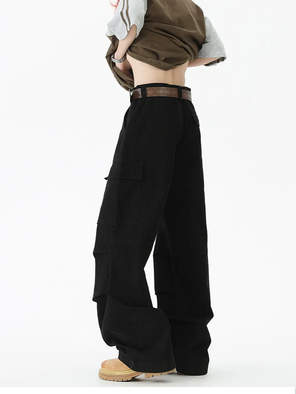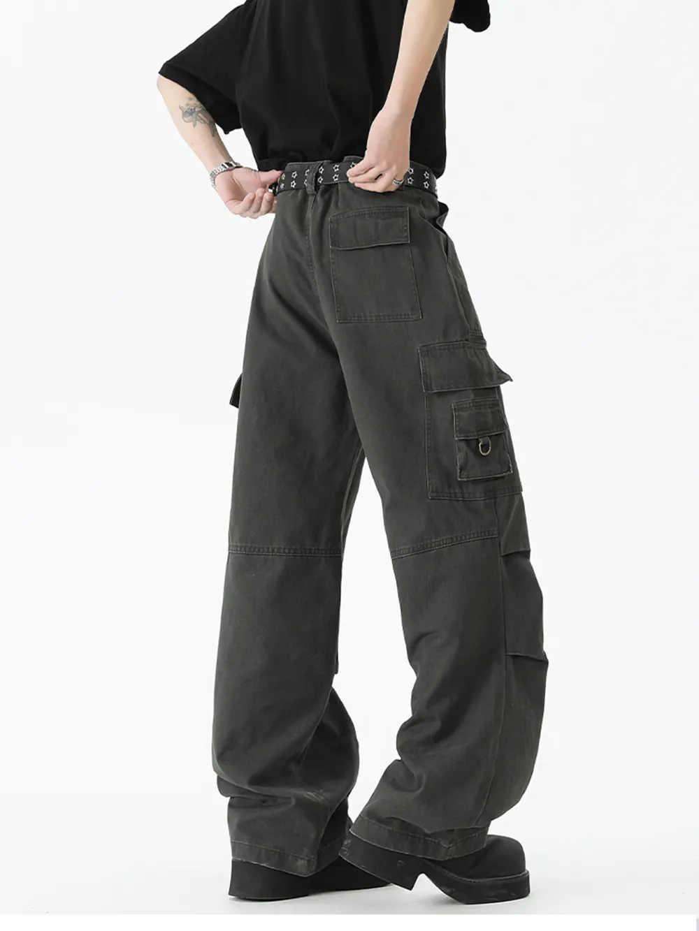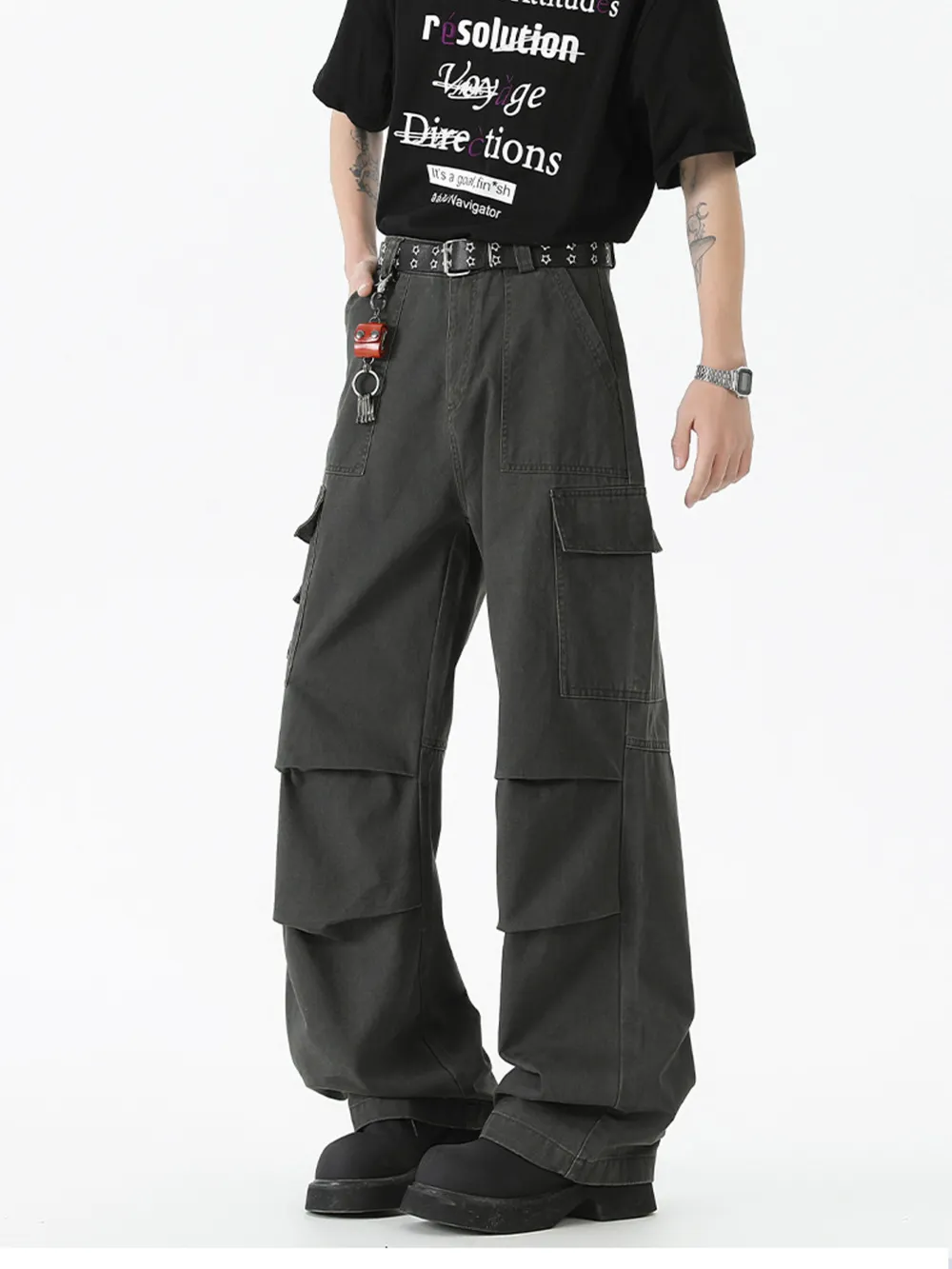 Men's Wide Leg Cargo Pants with Ruched Detail