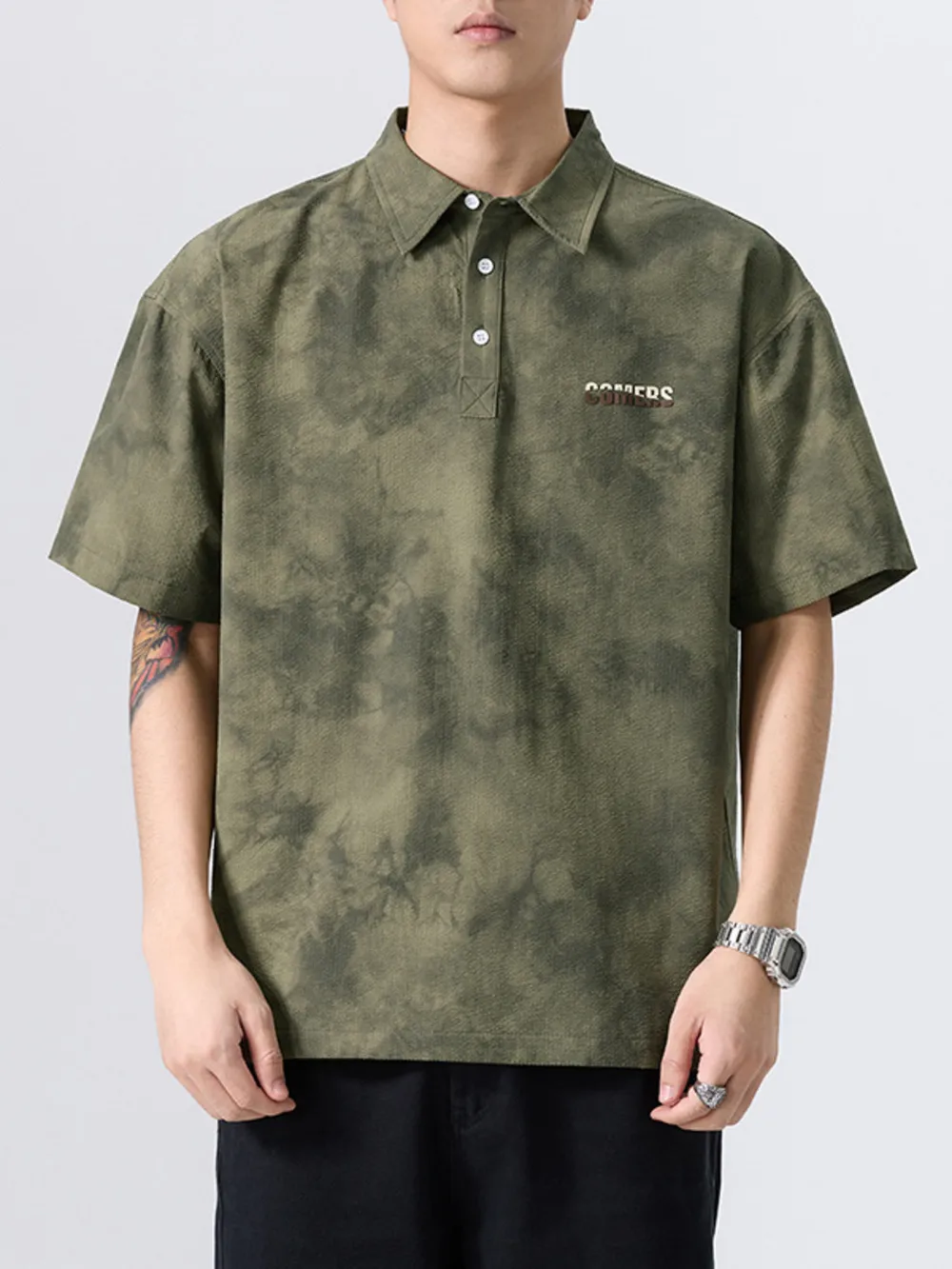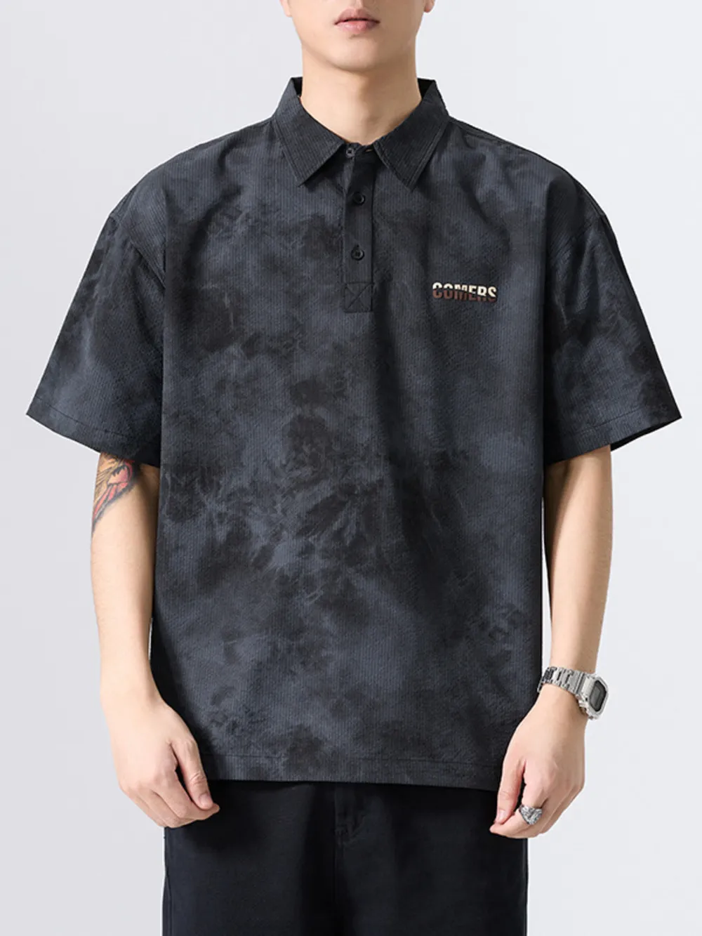 Men's Plus Size Tie-Dye Short Sleeve Polo Shirt